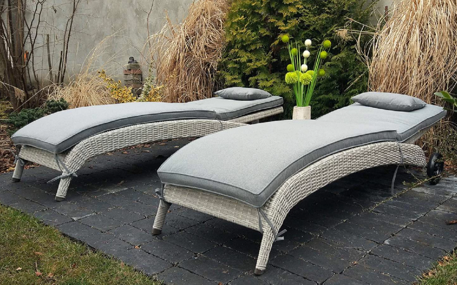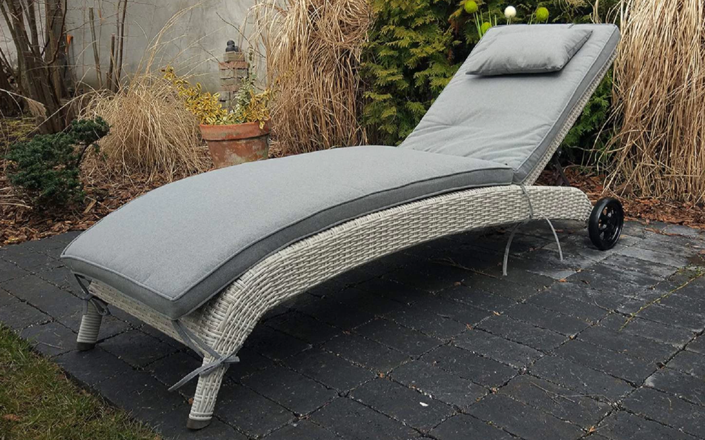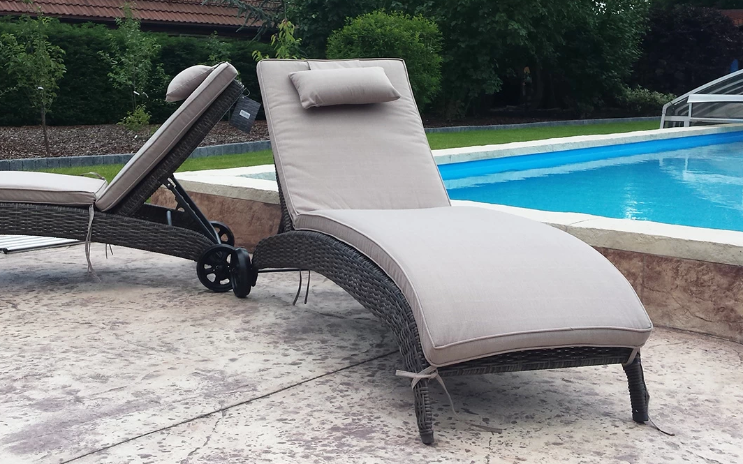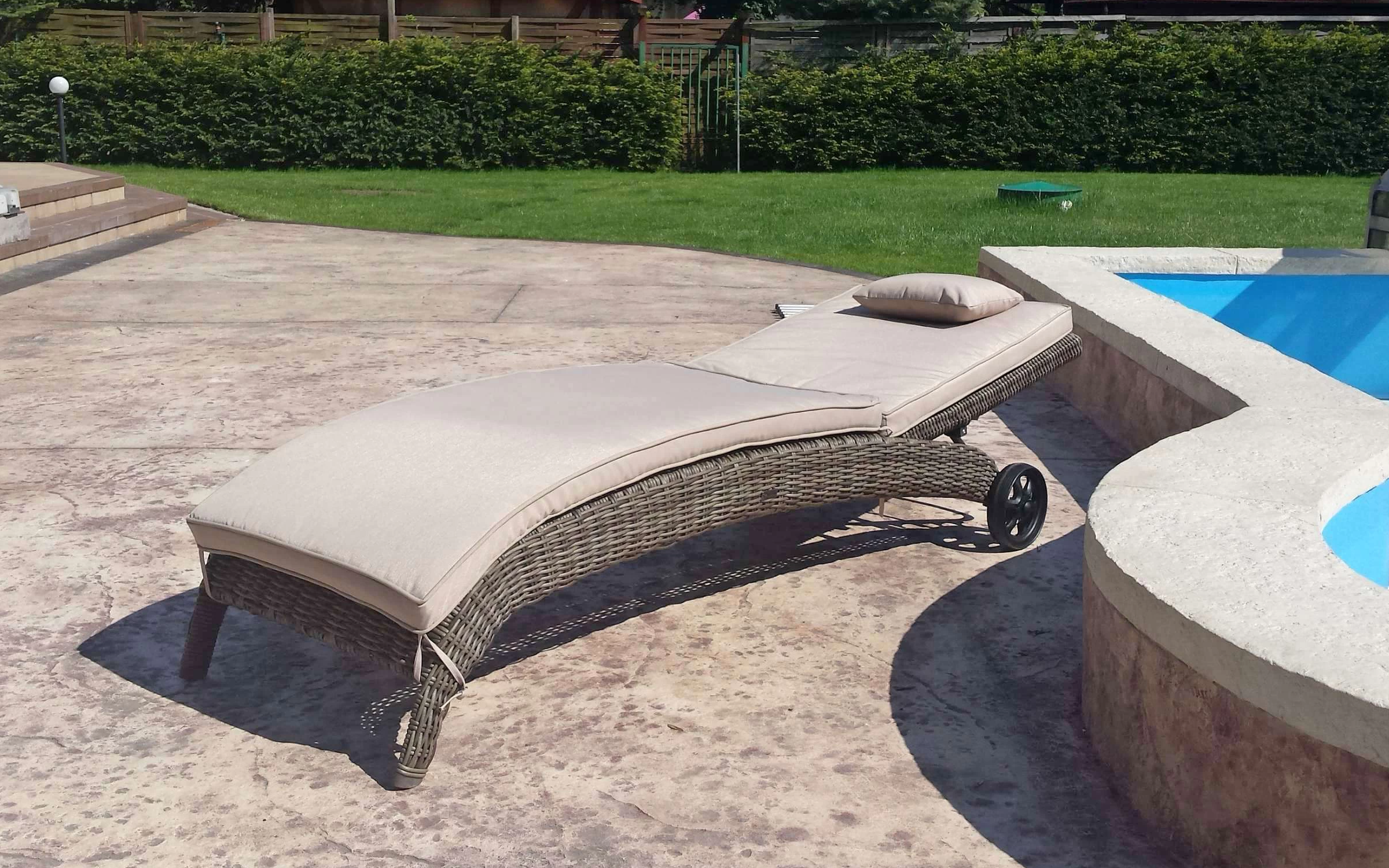 Elegancki leżak Belice VIP na kółkach, wykonany z wysokiej jakości półokrągłego technorattanu.