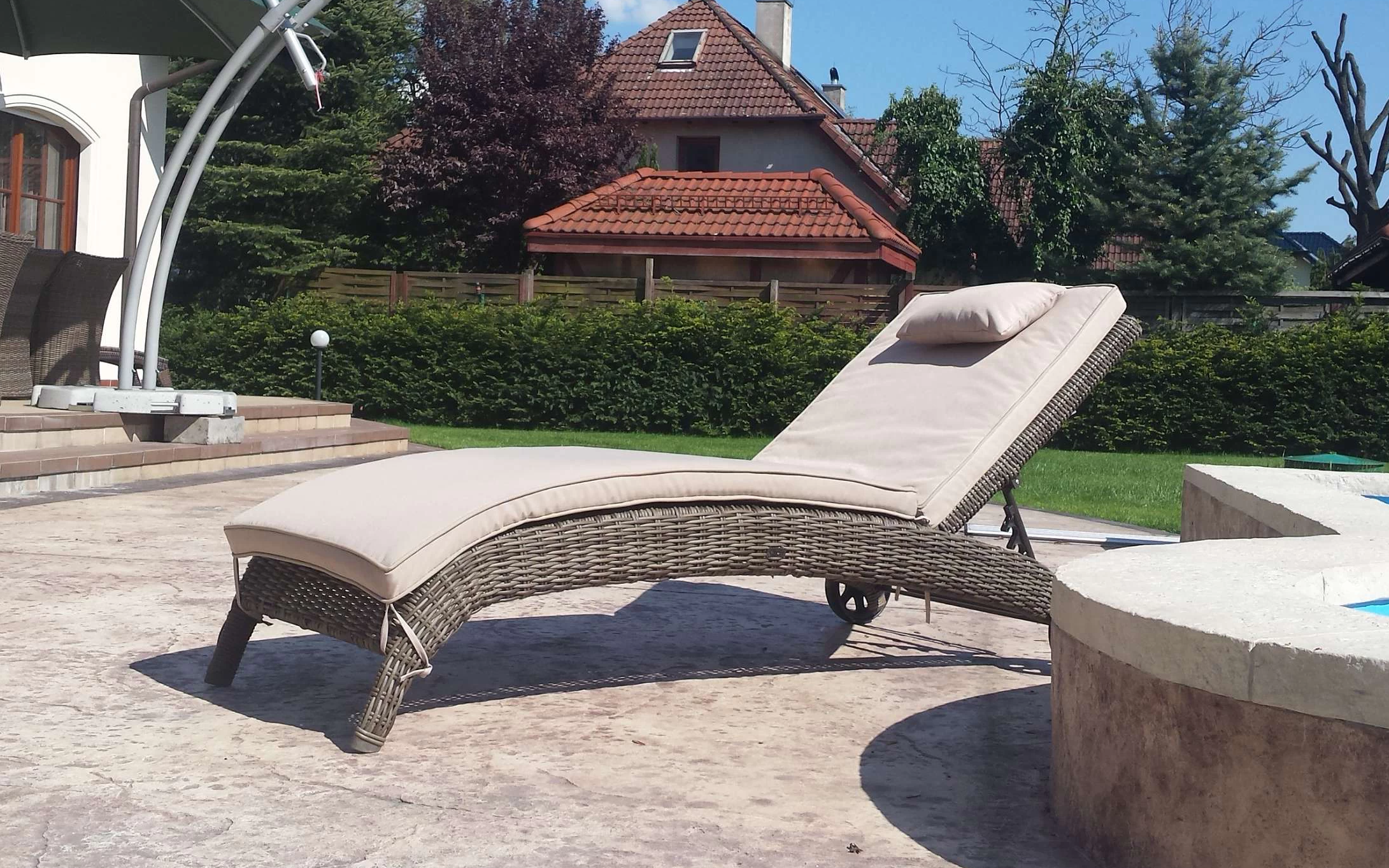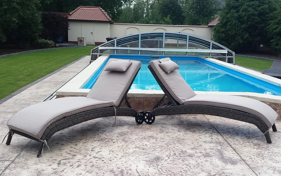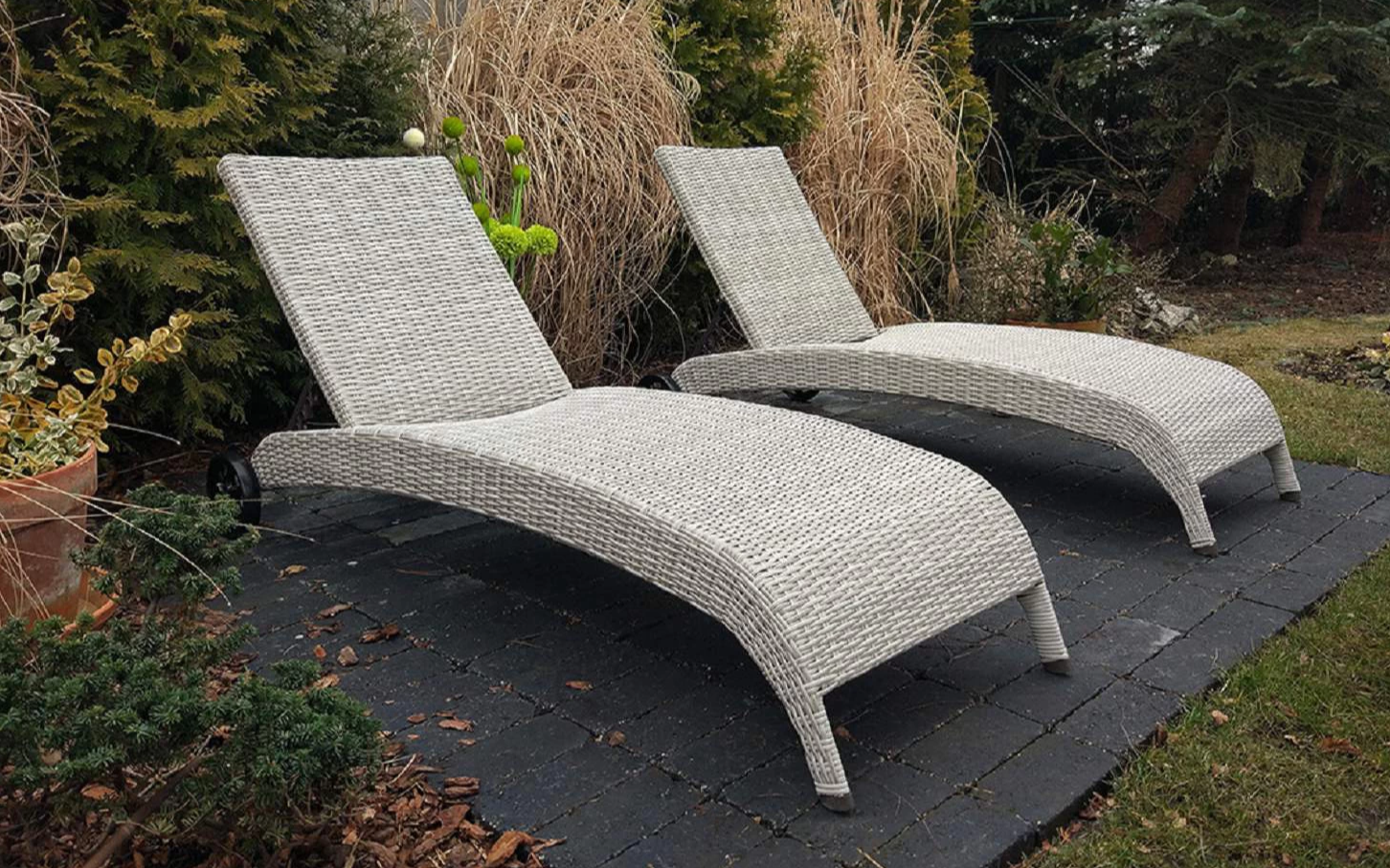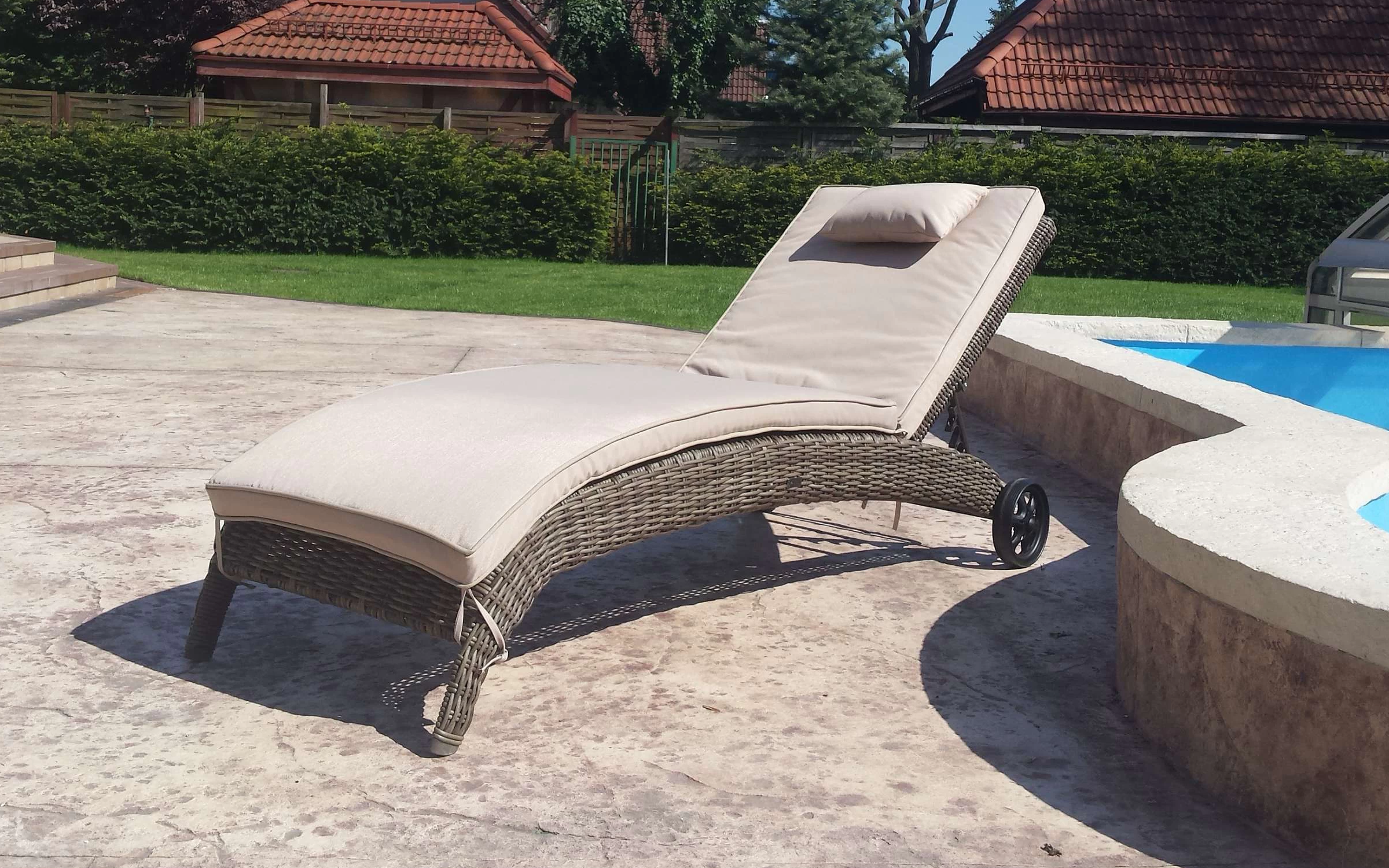 Elegancki leżak Belice VIP na kółkach, wykonany z wysokiej jakości półokrągłego technorattanu.