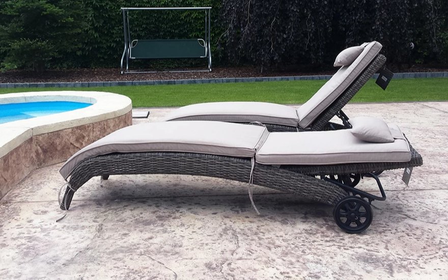 Jego opływowy kształt oraz miękki materac z zagłówkiem zapewnia komfort użytkowania. Leżak posiada kilkustopniową regulację oparcia. Konstrukcja została wykonana z aluminium, wierzchnią warstwę tworzy ręcznie wyplatany półokrągły technorattan.