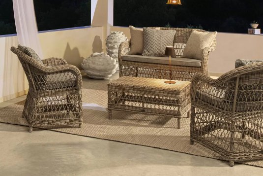 Gotowe, nowoczesne zestawy to najłatwiejszy i najszybszy sposób na zaaranżowanie przestrzeni w ogrodzie. Komplet wypoczynkowy na taras to gwarancja relaksu i stylowe inspiracje aranżacji na tarasie lub balkonie. W naszej ofercie znajdą Państwo komplety wykonane z technorattanu. To niezwykle eleganckie tworzywo odporne na działania czynników atmosferycznych. Taki zestaw mebli wykonanych z tworzywa sztucznego, doskonale imitującego naturalny materiał sprawdzi się doskonale w każdych warunkach i będzie służył przez lata.