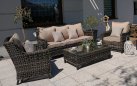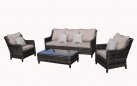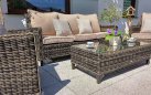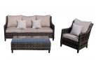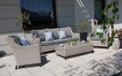 Ręcznie pleciony technorattan o półokrągłym przekroju, w pełni odporny na warunki atmosferyczne i promieniowanie UV. Dostępny w 2 kolorach. Nóżki wykonane z aluminium.