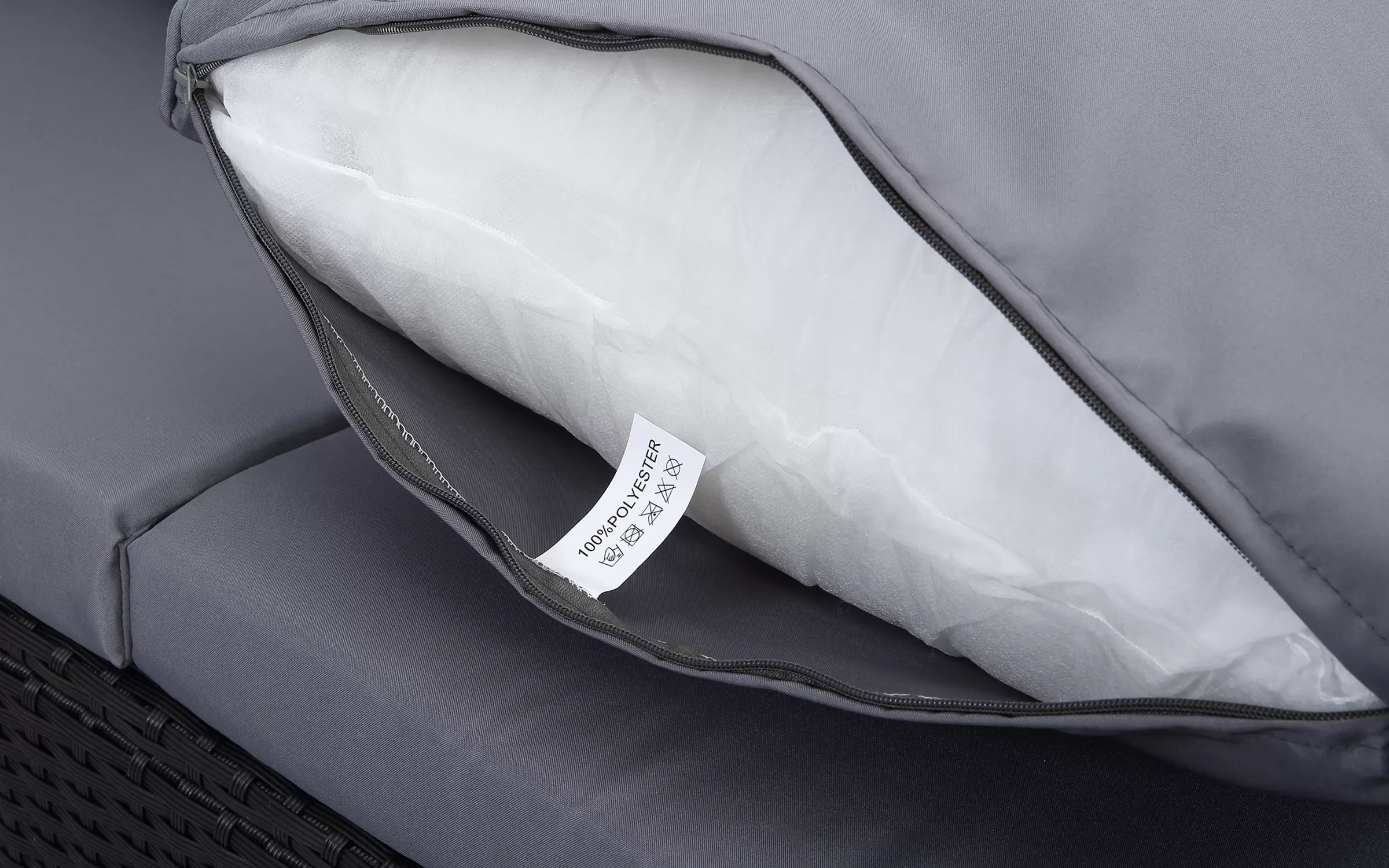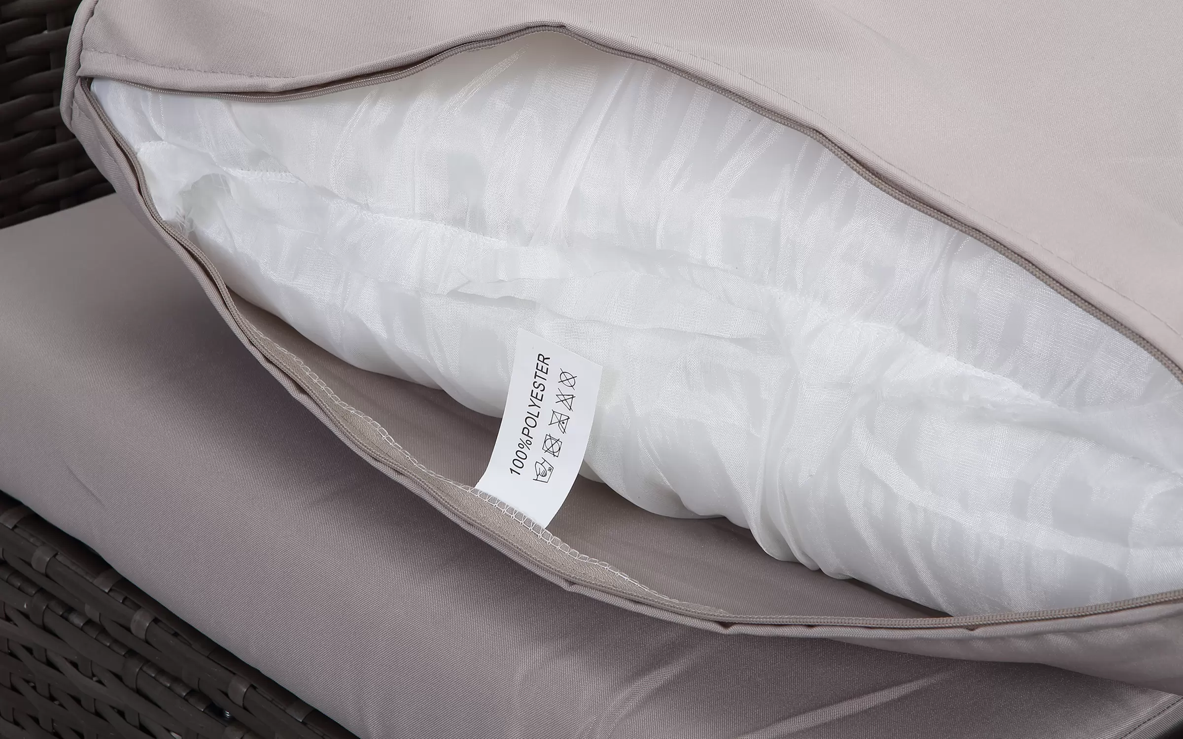 Gwarancja nie obejmuje zmian wynikających ze zużycia materiałów zastosowanych w poduszkach, w tym blaknięcia poszewek w wyniku długiego pozostawania pod wpływem promieni słonecznych.