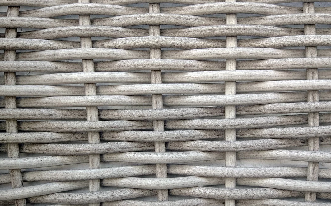 Wykończenie plecionką technorattanową o przekroju półokrągłym (śr. 5 mm). Ranty stołu oraz foteli wykończone są ozdobnym warkoczem z technorattanu okrągłego.