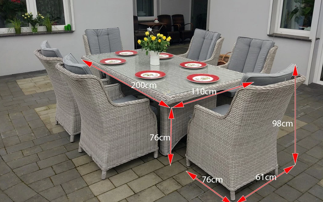 Długość 200 cm / Szerokość 110 cm / Wysokość 76 cm
