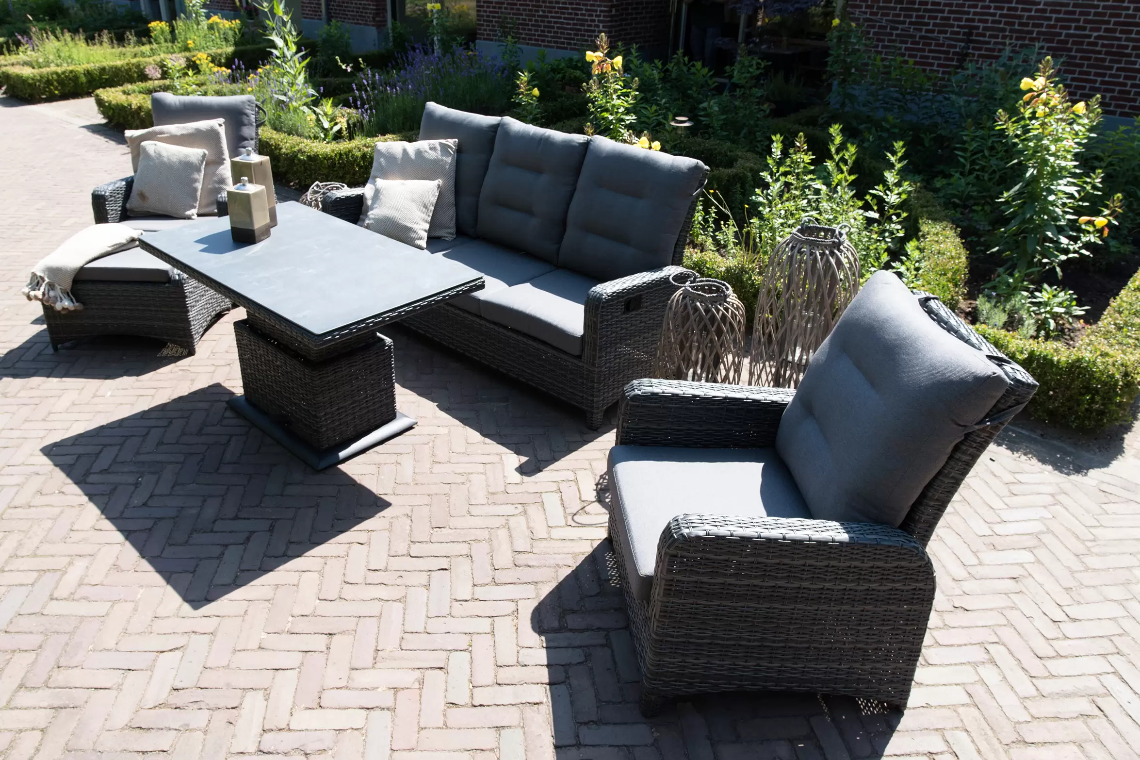 Zmień swój taras w ekskluzywny salon pod chmurką dzięki zestawowi wypoczynkowemu Soho Forte od renomowanej marki Lesli Living. Ten elegancki komplet to kwintesencja nowoczesnego stylu, łącząca w sobie mistrzowskie wykonanie z bezkompromisową trwałością. W skład zestawu wchodzi przestronna sofa trzyosobowa, dwa komfortowe fotele z wysokimi oparciami oraz designerski stolik kawowy, tworząc idealną przestrzeń do relaksu dla całej rodziny.