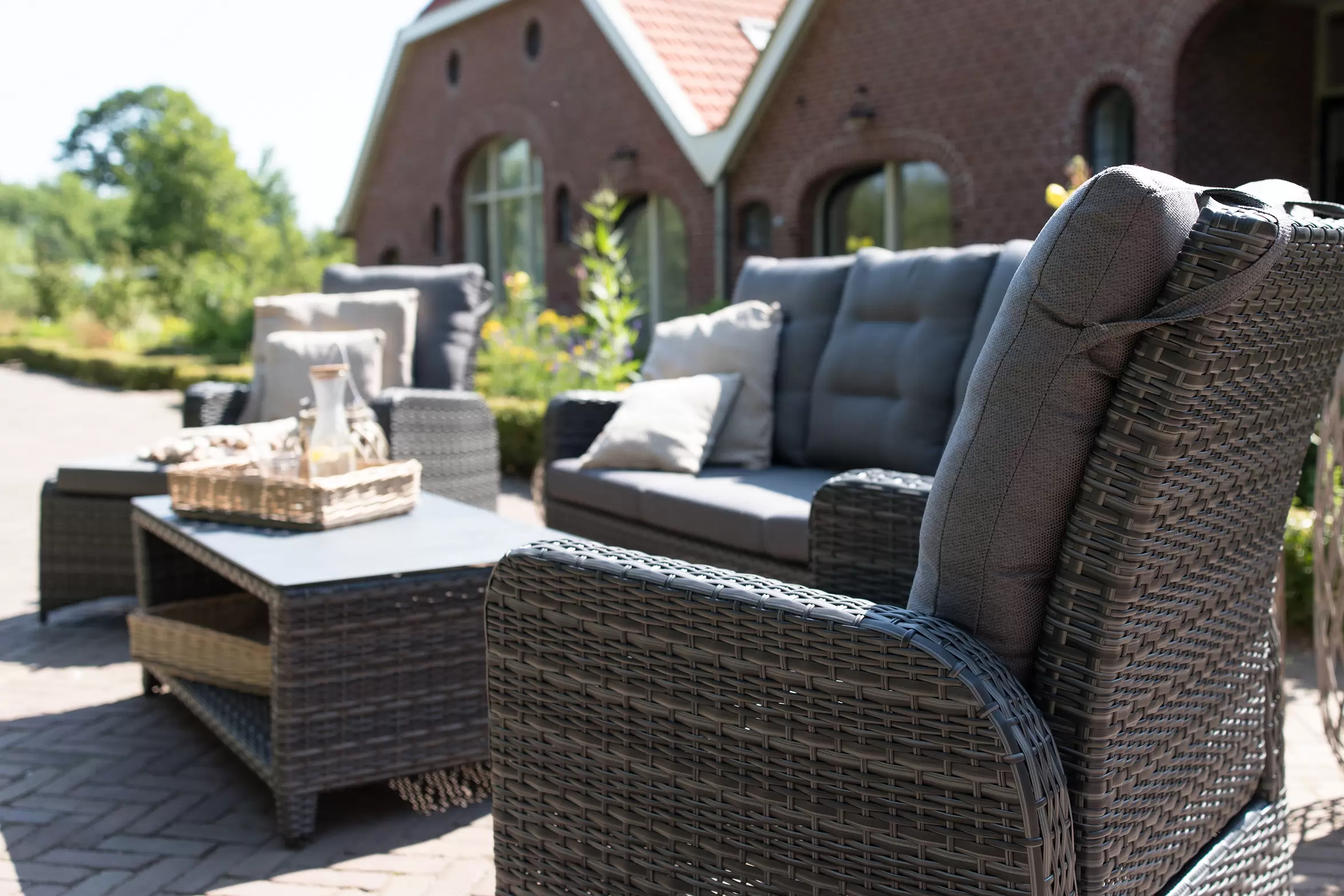 Meble wypoczynkowe są dostarczane z wodoodporną tapicerką siedziska i oparcia.