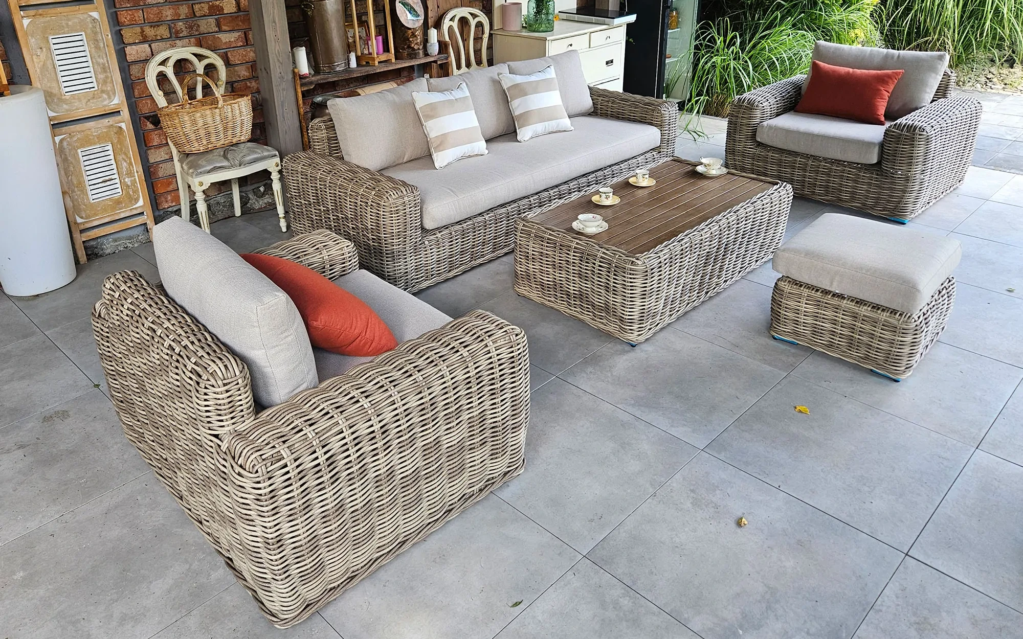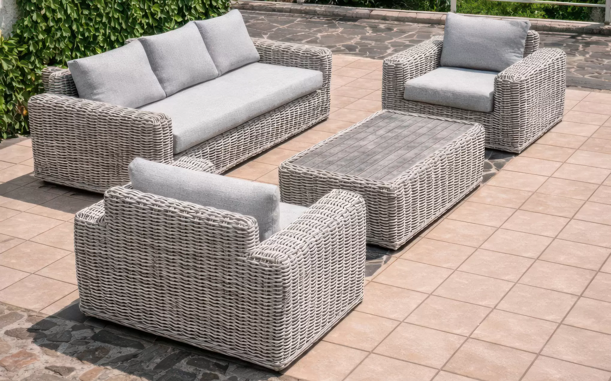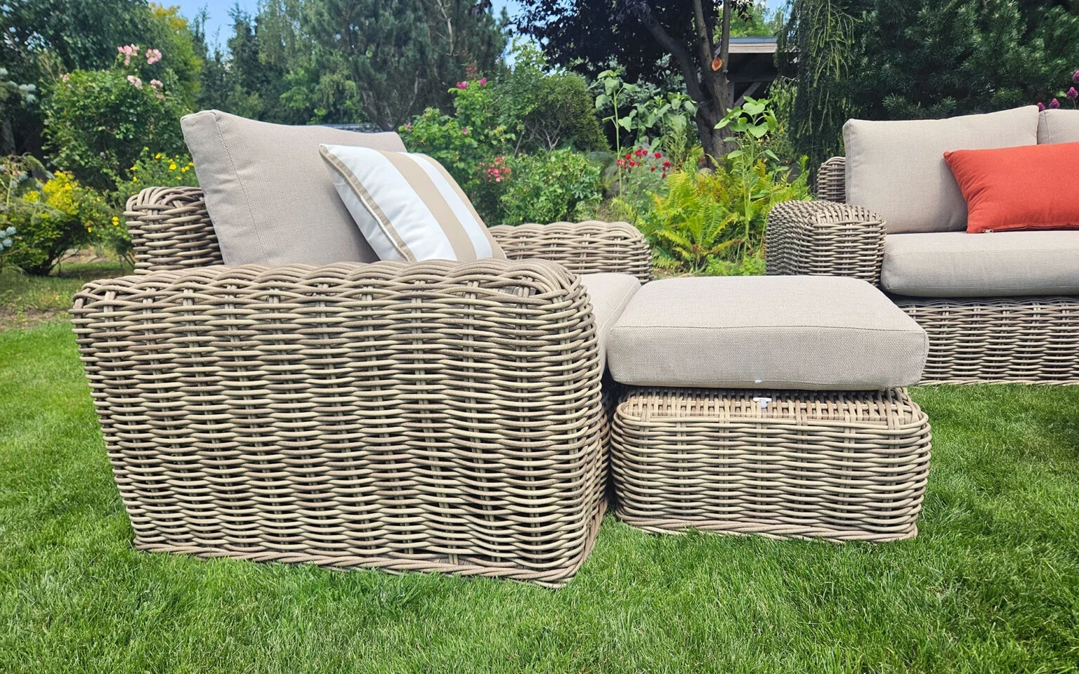 Zestaw wypoczynkowy ogrodowy TORRES to propozycja dla osób szukających solidności i klasycznej elegancji na tarasie, w ogrodzie lub na patio. W skład kompletu wchodzi trzyosobowa sofa, dwa fotele oraz stolik kawowy o wymiarach 122×70×37 cm, tworząc spójną i reprezentacyjną przestrzeń do odpoczynku. Całość opiera się na aluminiowej konstrukcji odpornej na rdzę, którą gęsto opleciono okrągłym technorattanem o średnicy 8 mm, co nadaje meblom wyjątkową masę i naturalny wygląd. Wybierając te profesjonalne meble wypoczynkowe na taras, zyskujesz gwarancję trwałości i wysokiego komfortu, który zapewniają grube poduszki siedziskowe i oparciowe, przystosowane do intensywnego użytkowania zewnętrznego.