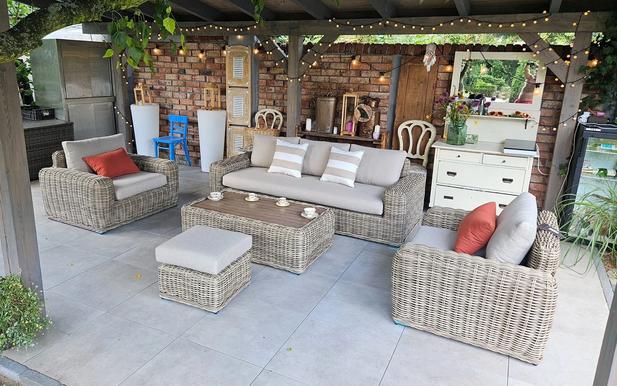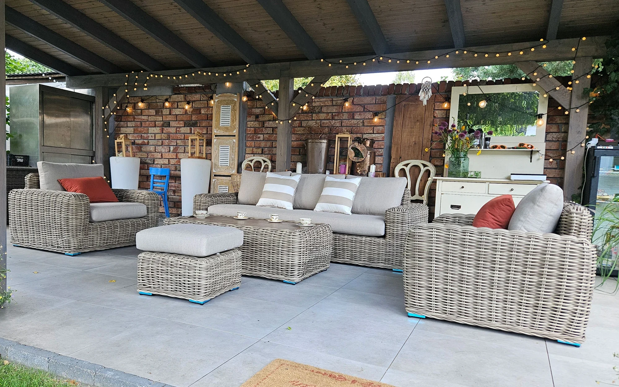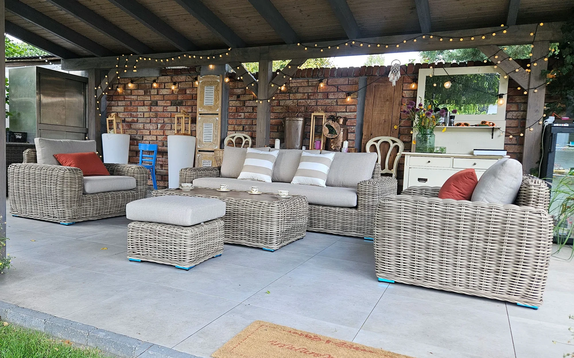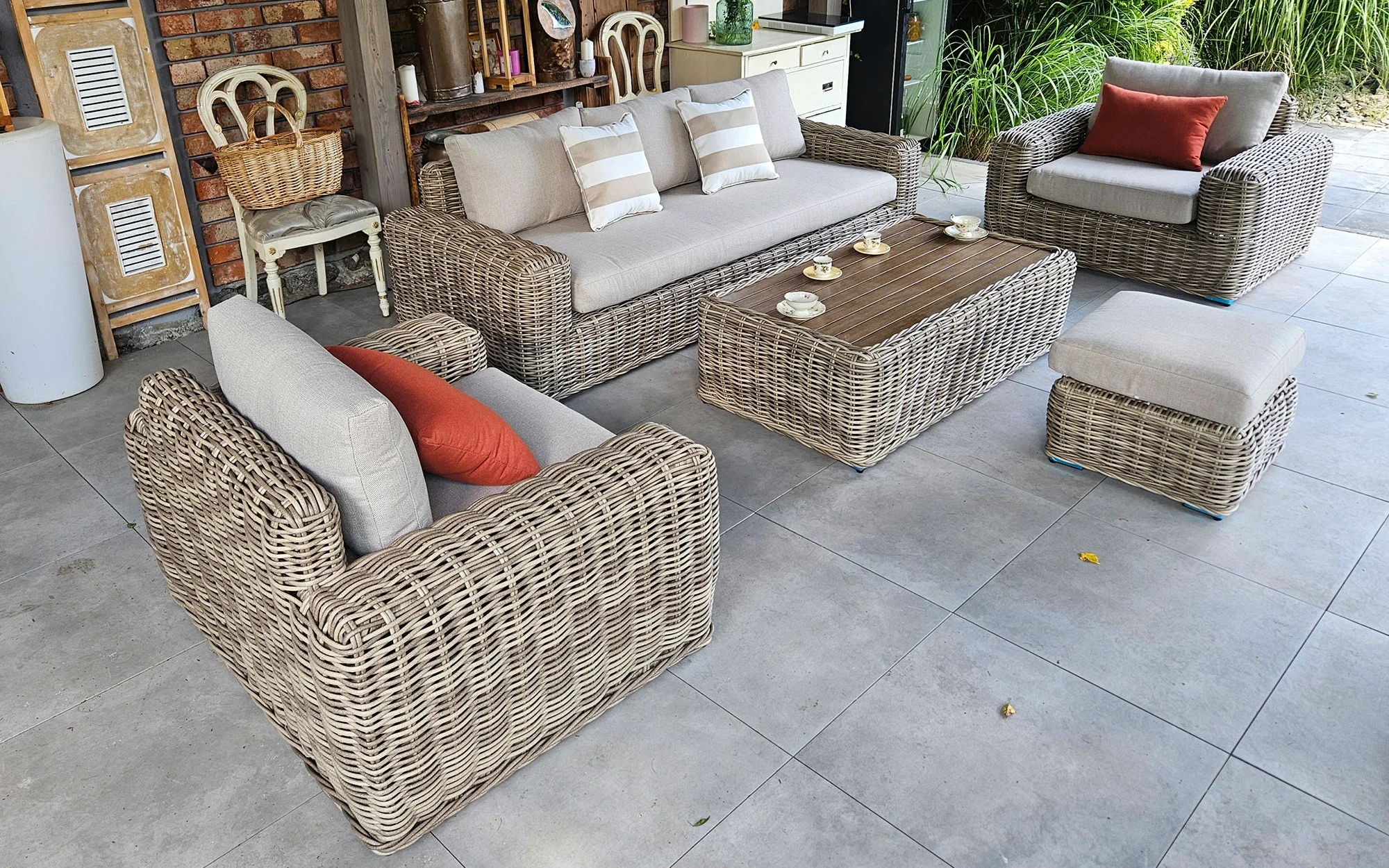 Zestaw wypoczynkowy ogrodowy TORRES to propozycja dla osób szukających solidności i klasycznej elegancji na tarasie, w ogrodzie lub na patio. W skład kompletu wchodzi trzyosobowa sofa, dwa fotele oraz stolik kawowy o wymiarach 122×70×37 cm, tworząc spójną i reprezentacyjną przestrzeń do odpoczynku. Całość opiera się na aluminiowej konstrukcji odpornej na rdzę, którą gęsto opleciono okrągłym technorattanem o średnicy 8 mm, co nadaje meblom wyjątkową masę i naturalny wygląd. Wybierając te profesjonalne meble wypoczynkowe na taras, zyskujesz gwarancję trwałości i wysokiego komfortu, który zapewniają grube poduszki siedziskowe i oparciowe, przystosowane do intensywnego użytkowania zewnętrznego.