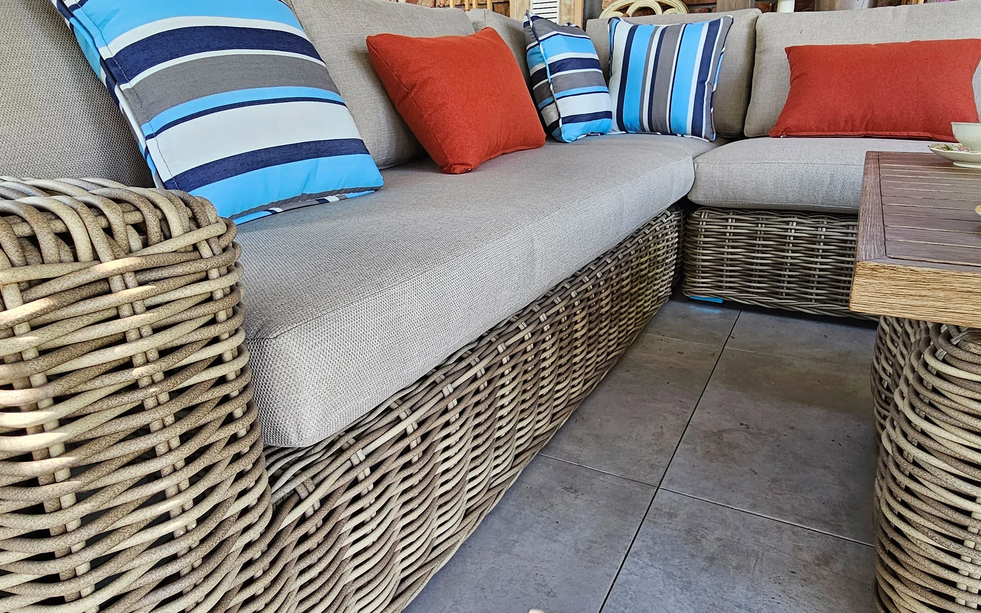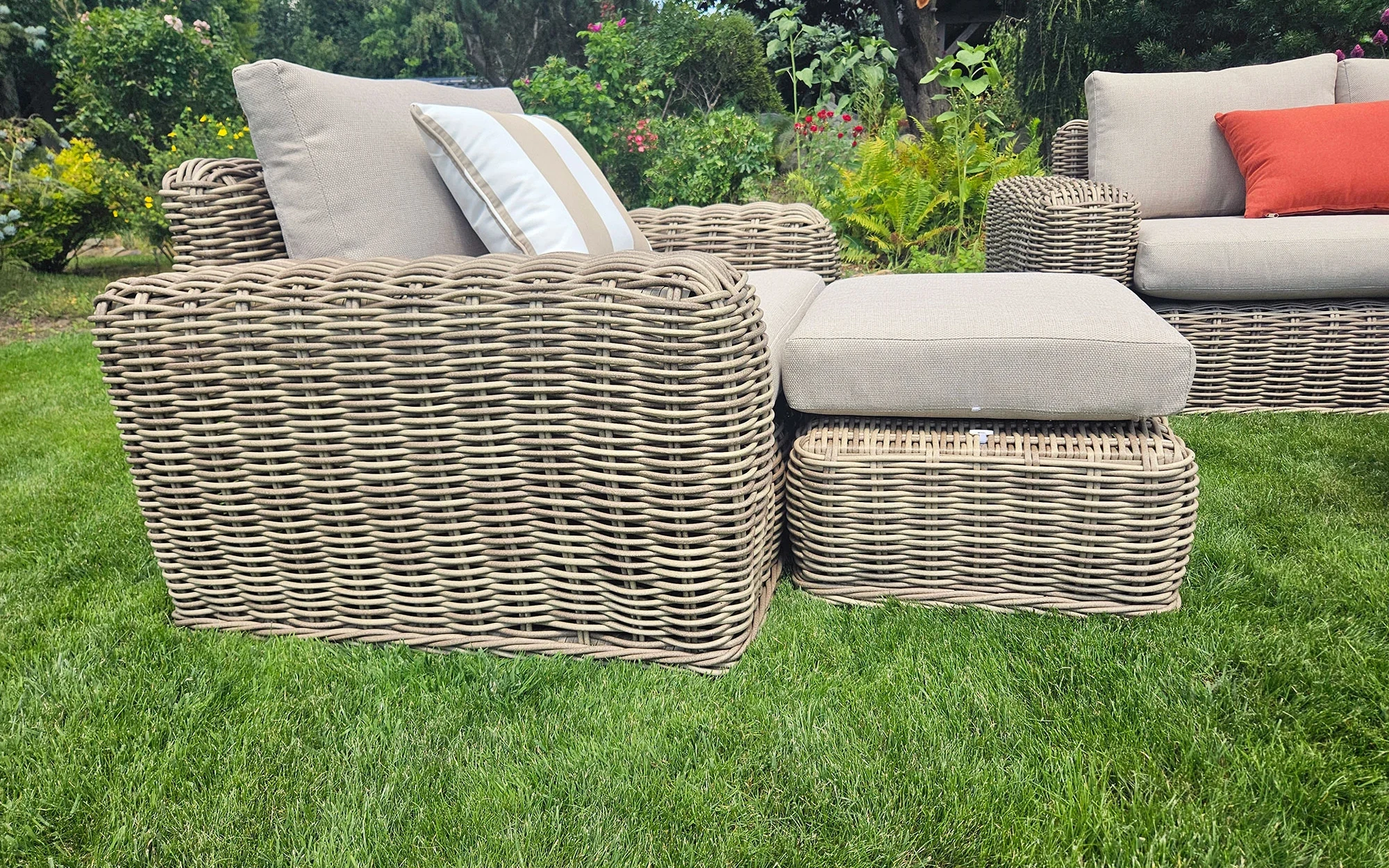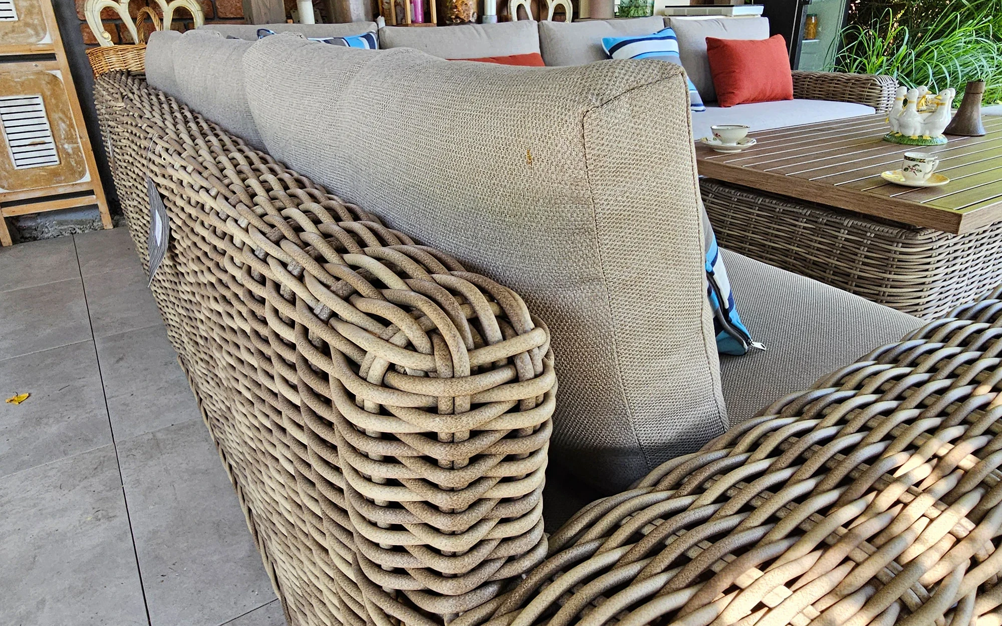 Technorattan okrągły 8 mm – wysokiej gęstości polietylen (HDPE) o pełnym profilu kołowym. Średnica 8 mm zapewnia meblom znacznie większą odporność mechaniczną, masę własną oraz sztywność niż standardowe, cienkie plecionki płaskie. Materiał jest barwiony w masie na etapie produkcji, co wyklucza płowienie pod wpływem intensywnego promieniowania UV oraz kruszenie w niskich temperaturach (odporność w zakresie od -30°C do +50°C). Charakteryzuje się zerową higroskopijnością, co czyni go całkowicie odpornym na wilgoć, grzyby oraz zabrudzenia organiczne.