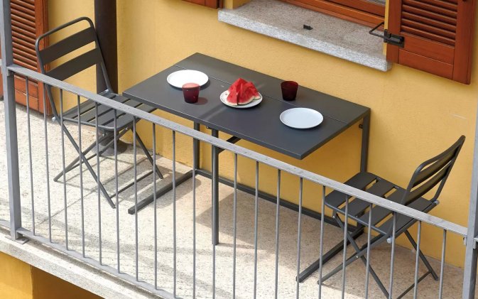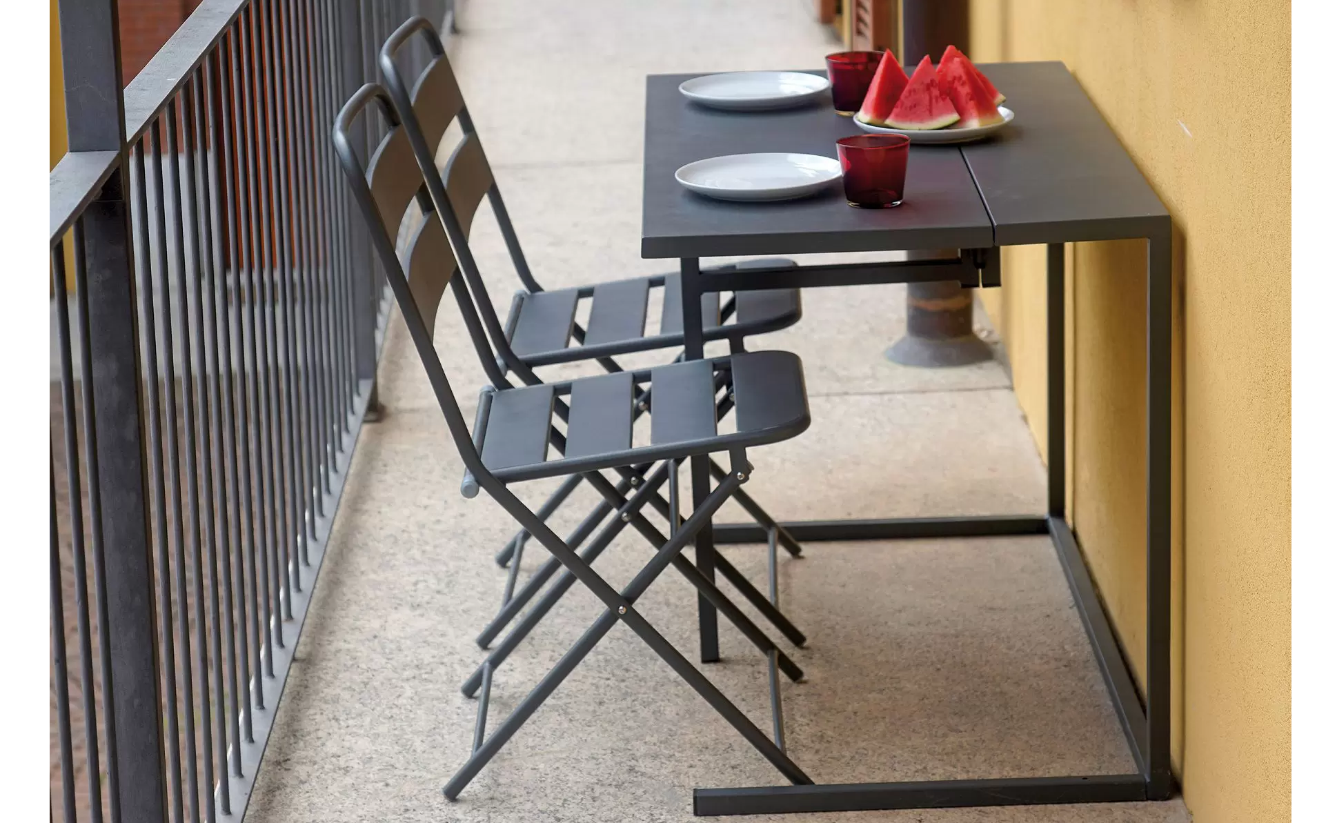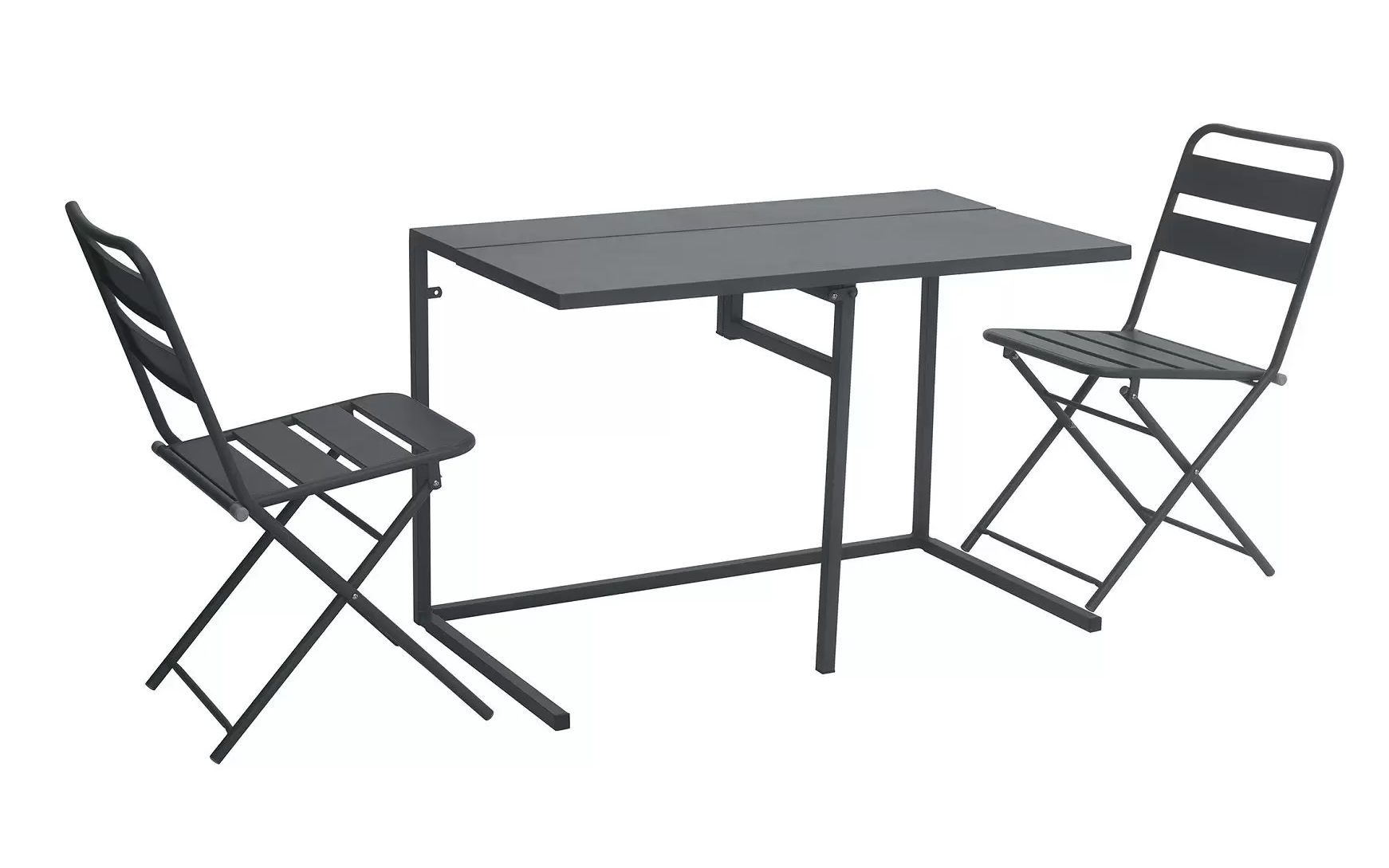 Dwa składane krzesła i stół o wymiarach 100 x 50 cm