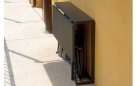wykonany z żelaza z przedłużeniami na stopy i oczkami do montażu na ścianie.