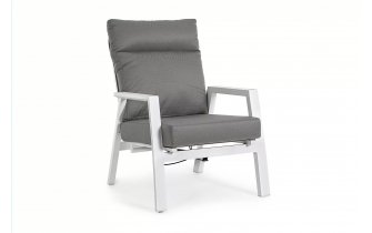Aluminiowy fotel z pochylanym oparciem i podnóżkiem KLEDI