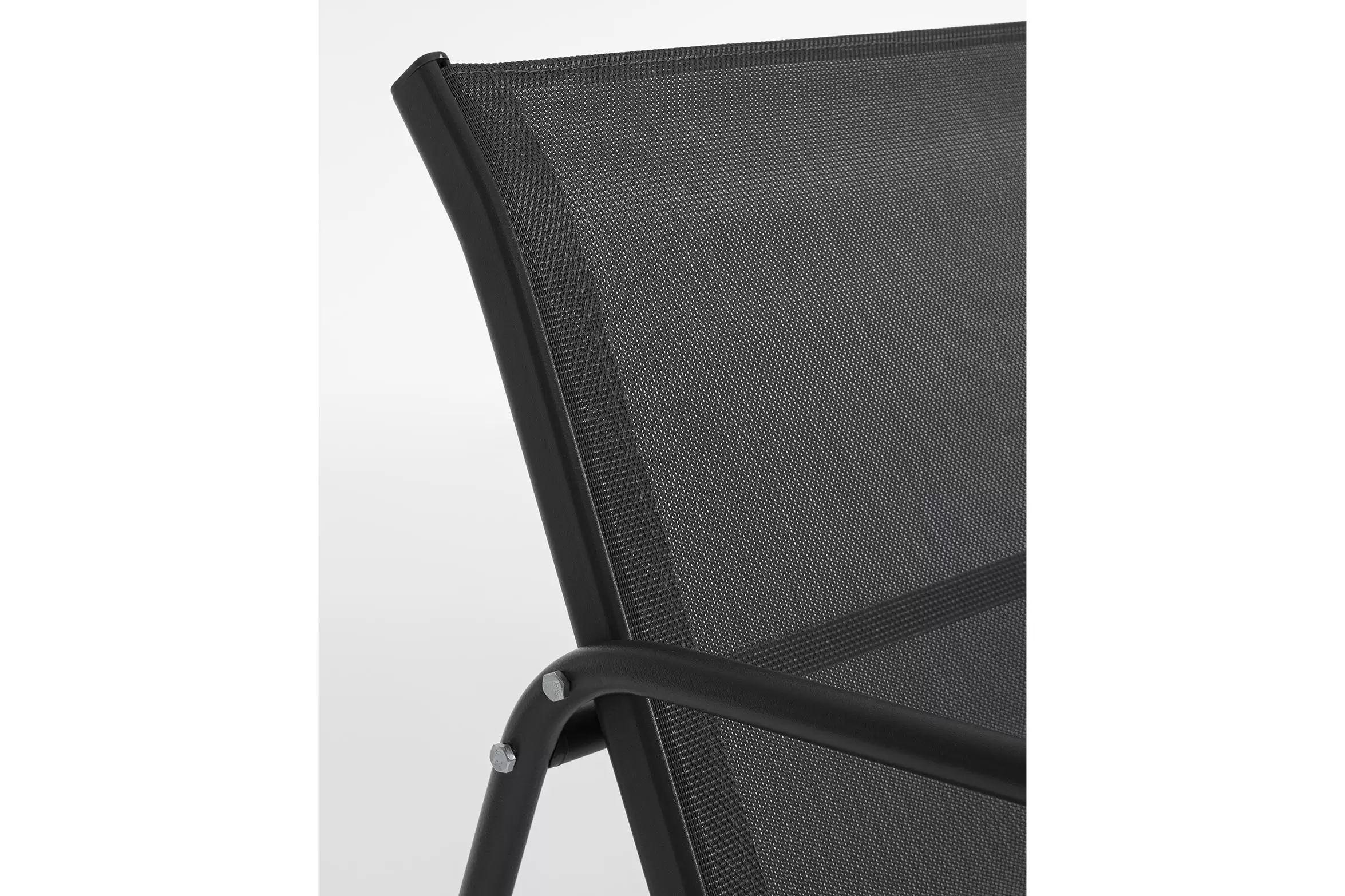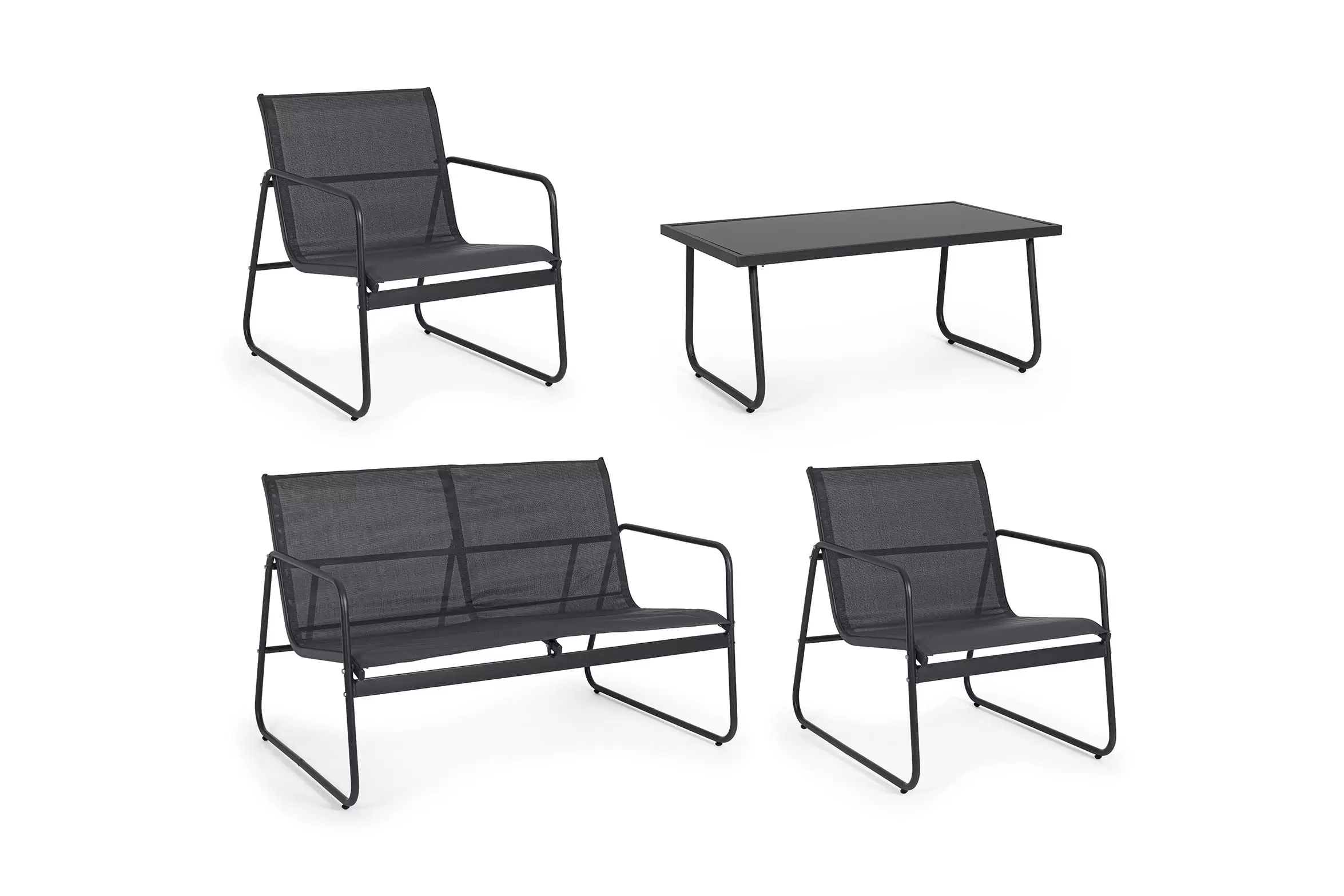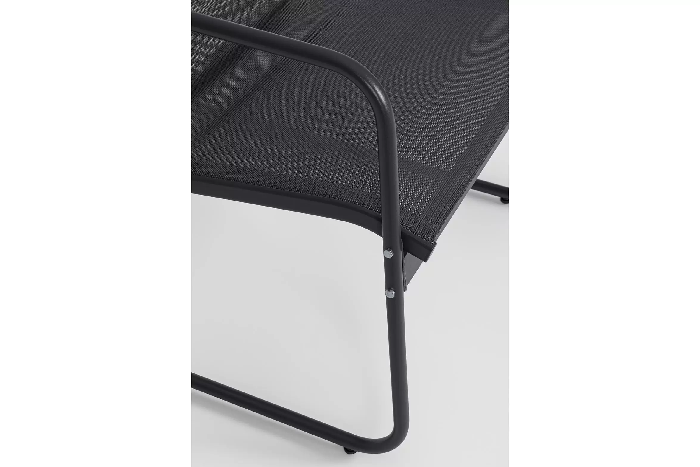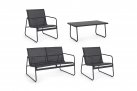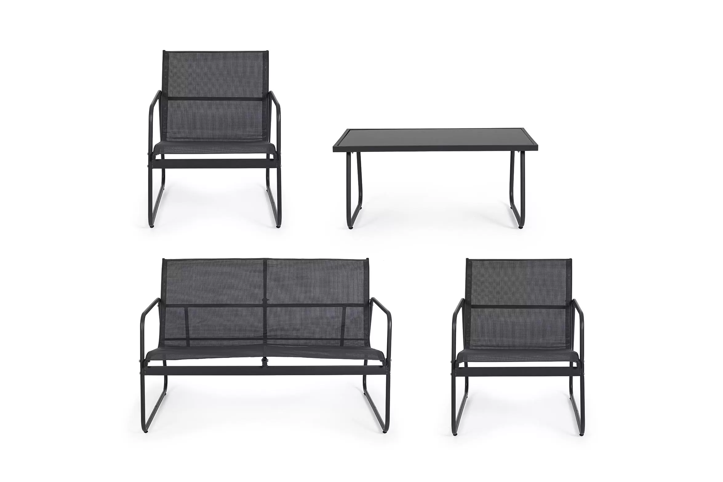 Lekki komplet wypoczynkowy o stalowej konstrukcji stalowej fosforanowanej i malowanej proszkowo.
