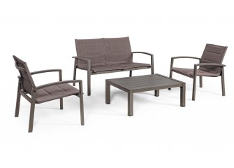 Lekki komplet wypoczynkowy o stalowej konstrukcji stalowej fosforanowanej i malowanej proszkowo.