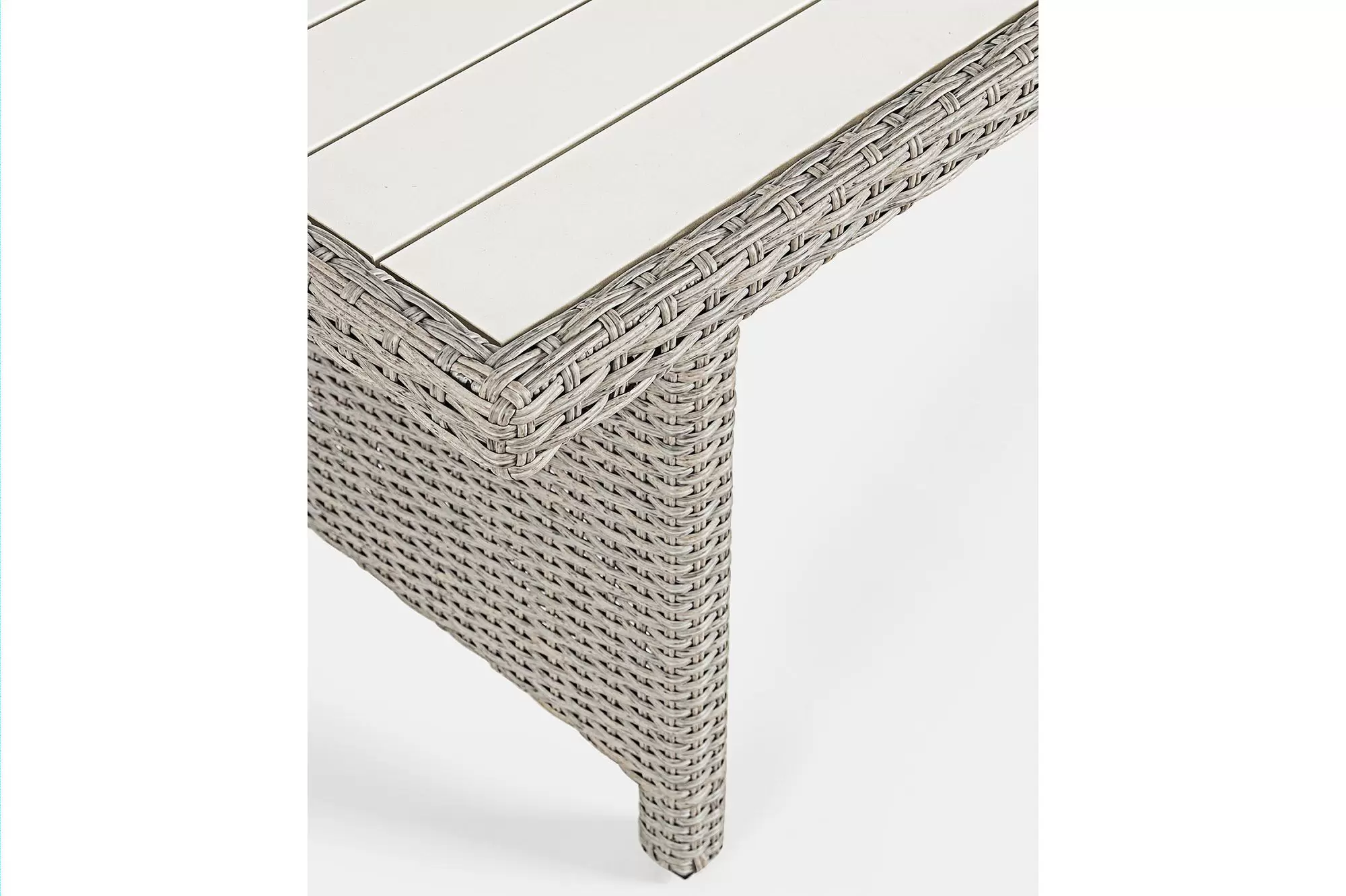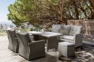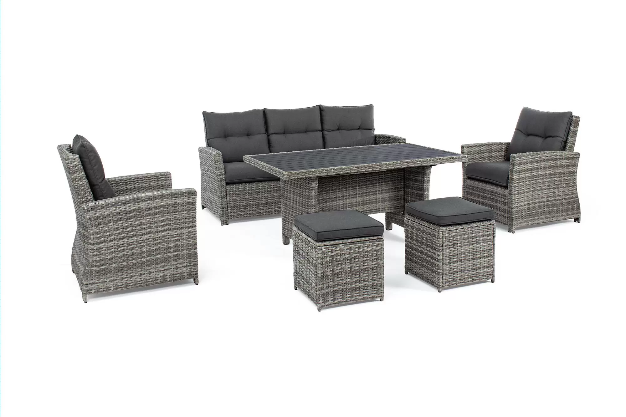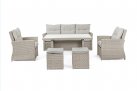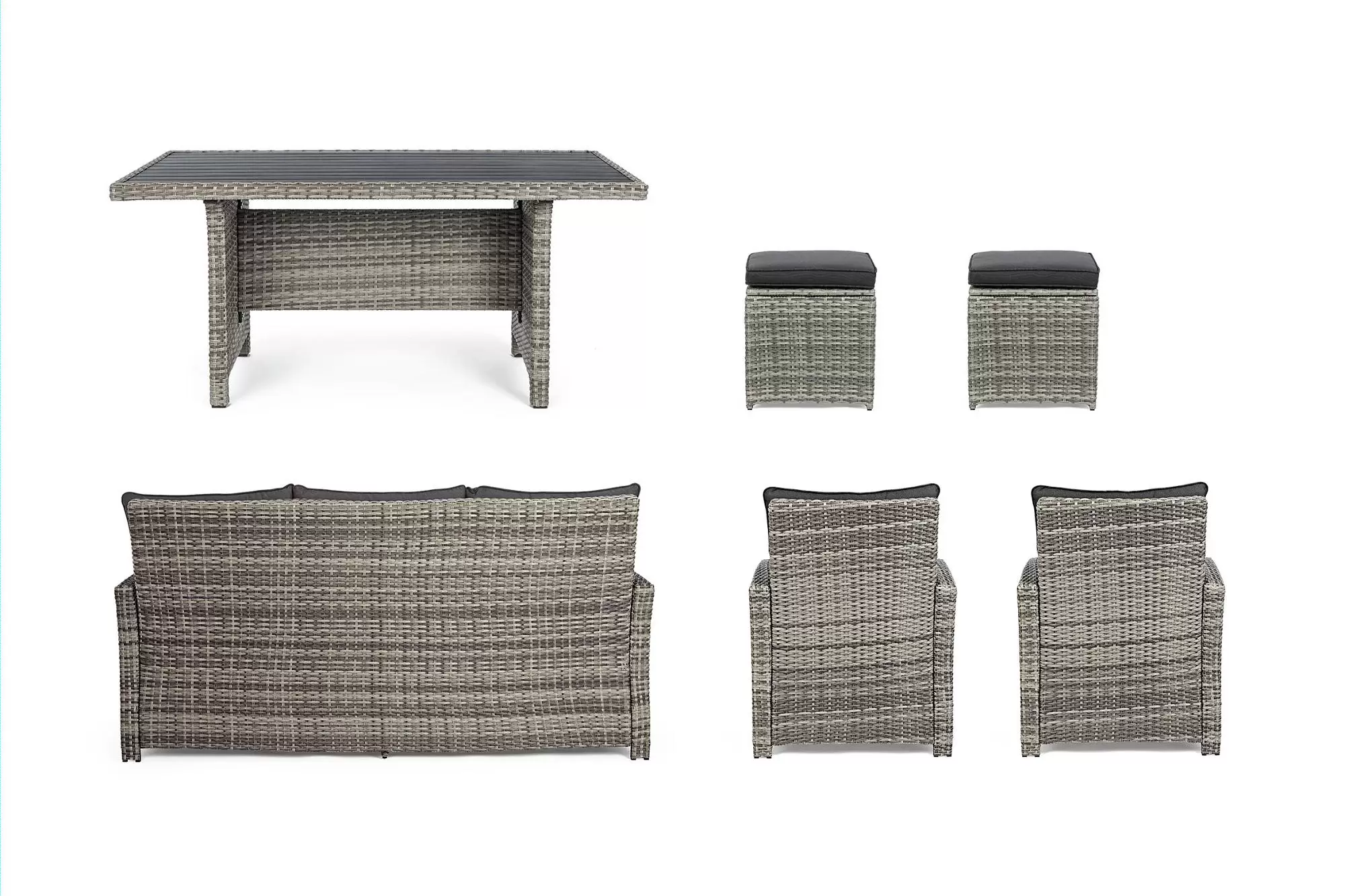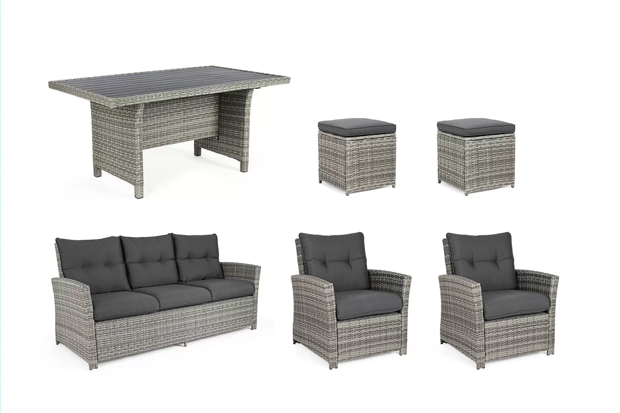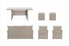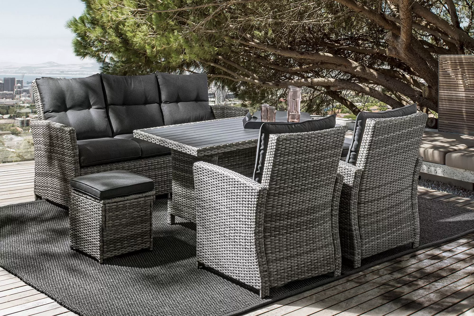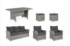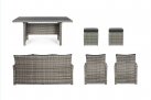 Meble wypoczynkowe z wysokim stołem co umożliwia wygodne spożycie obiadu na tarasie. Miejsce dla 7 osób.