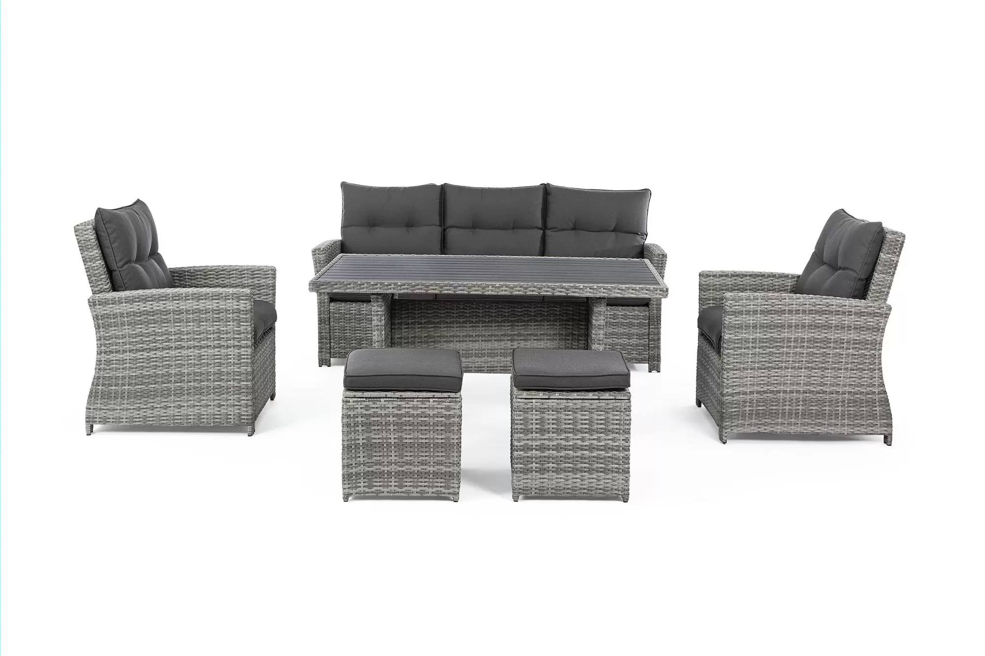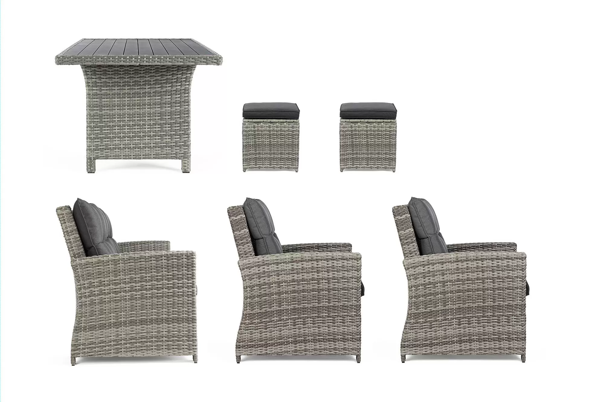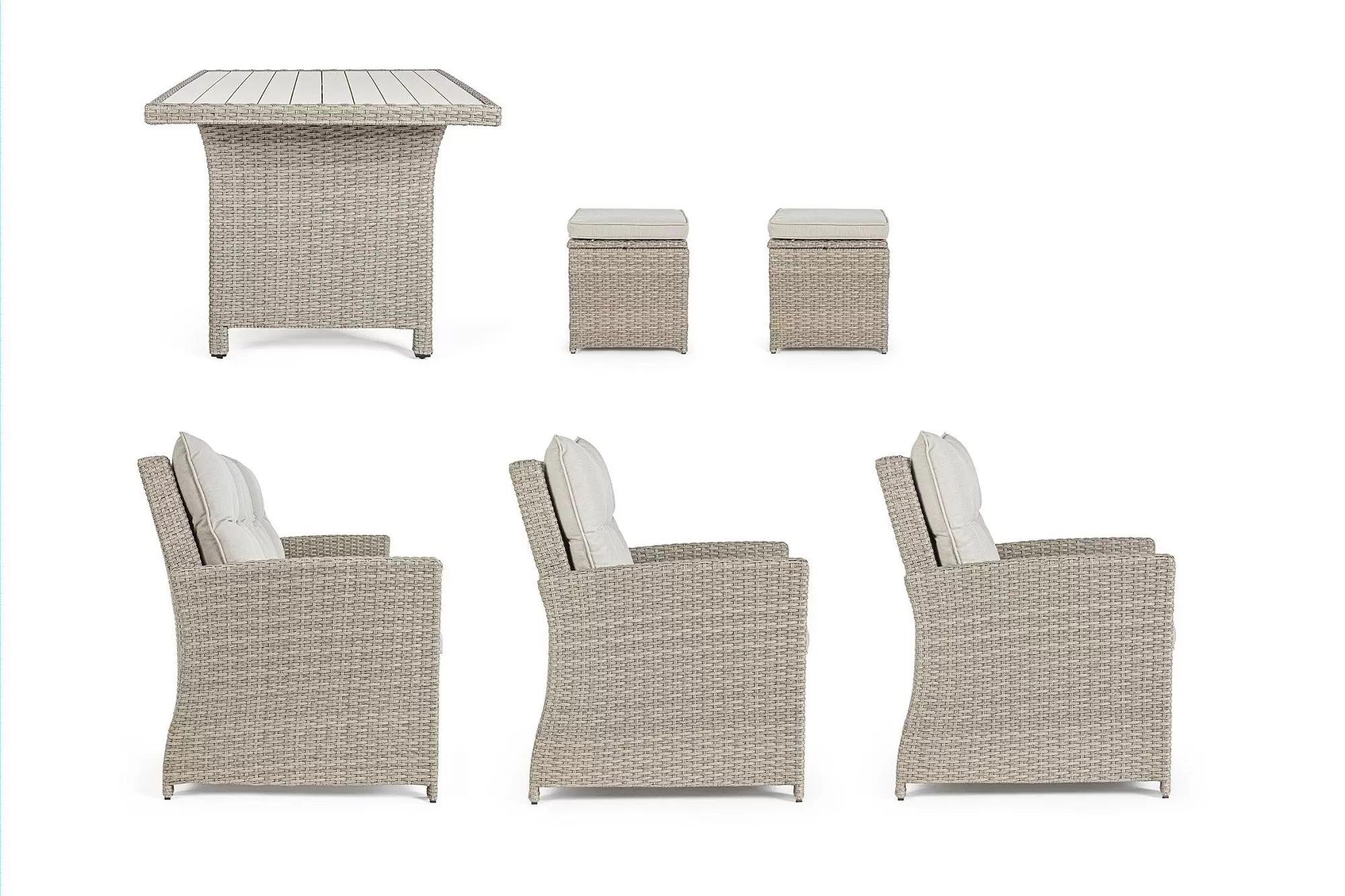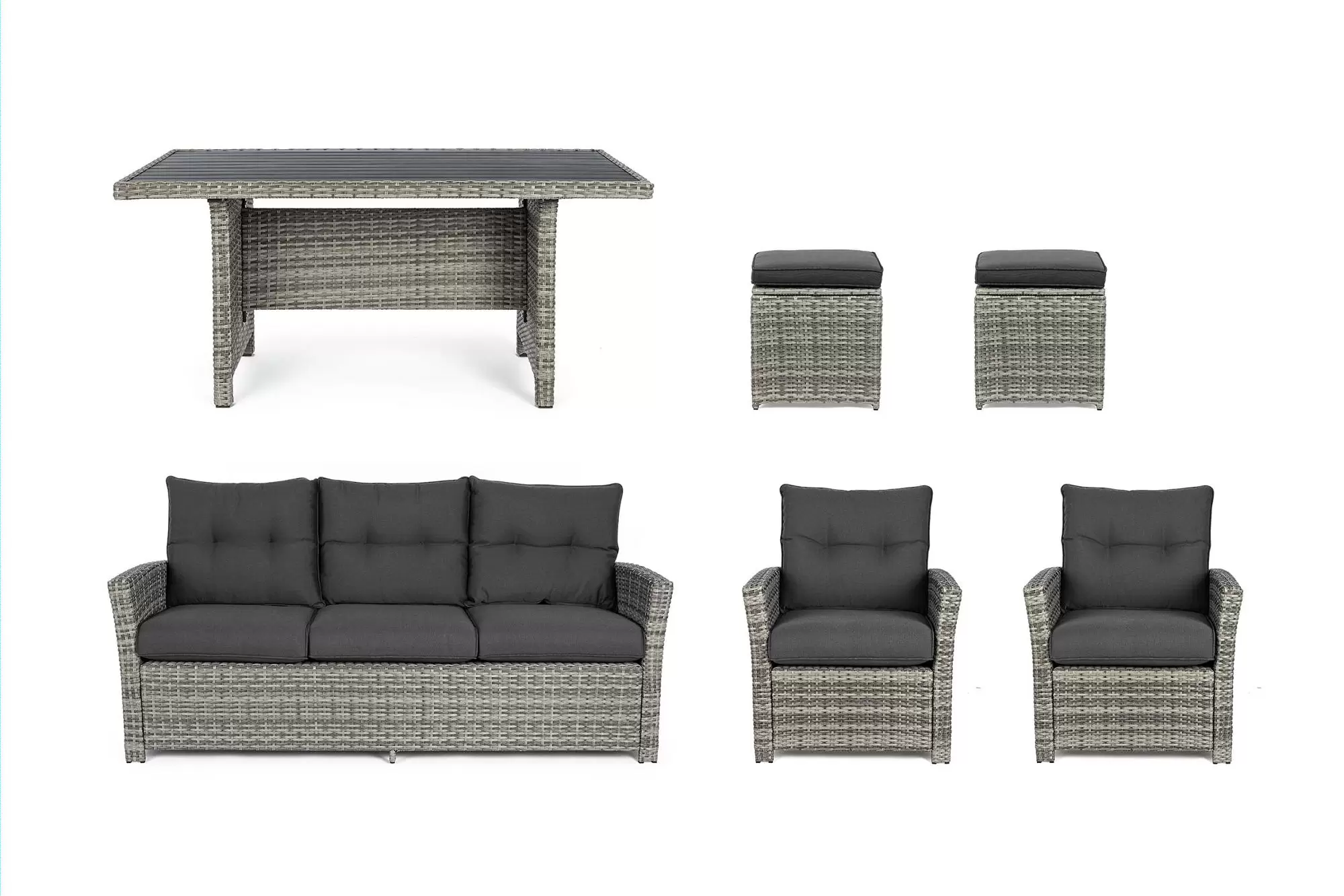 Meble wypoczynkowe z wysokim stołem co umożliwia wygodne spożycie obiadu na tarasie. Miejsce dla 7 osób.