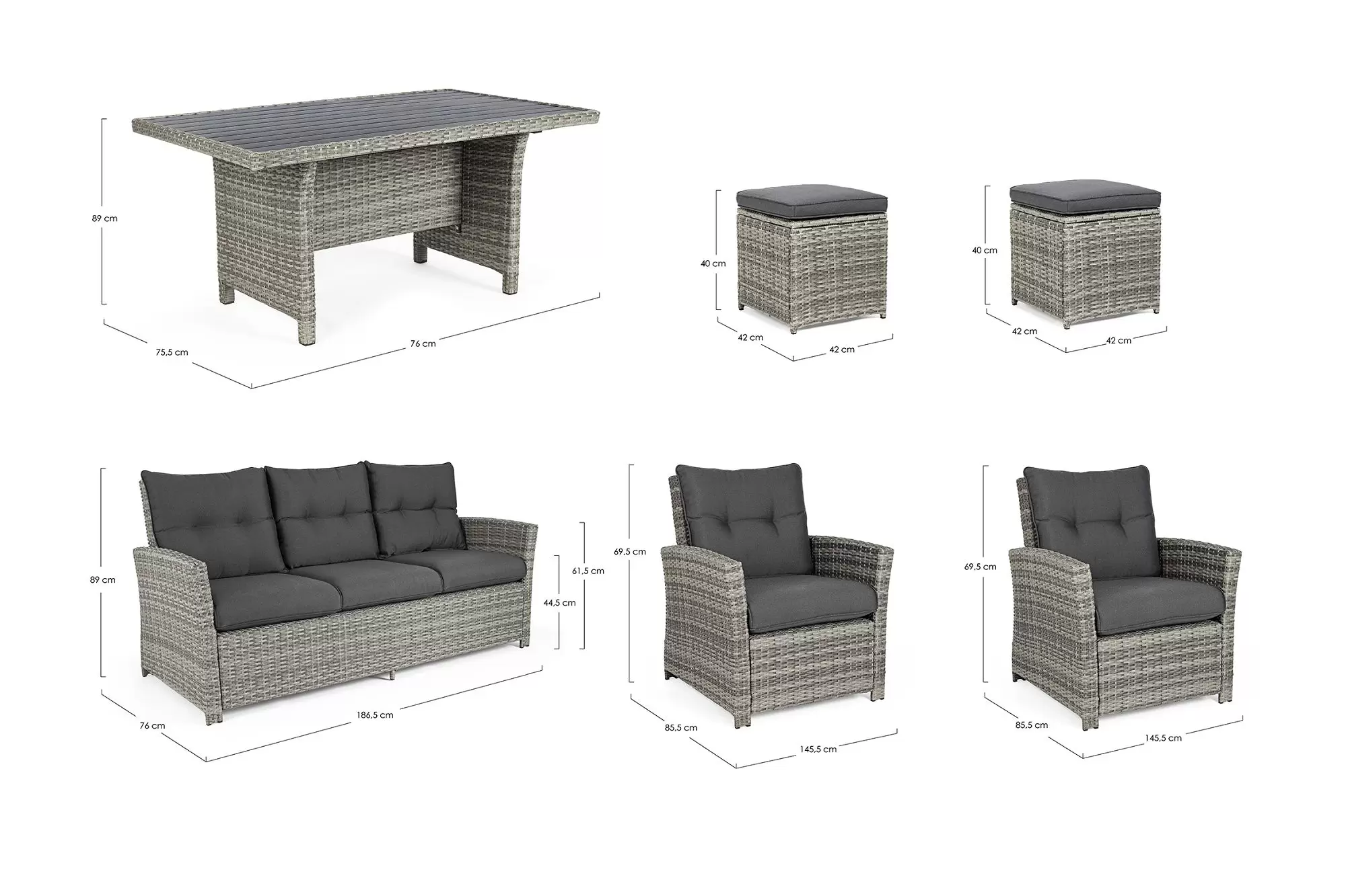 Szerokość 186,5 cm / Głębokość 76 cm / Wysokość 89 cm