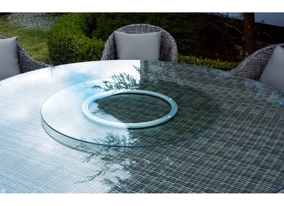 Szyba przykrywająca technorattanowy blat stołu o grubości 6 mm.