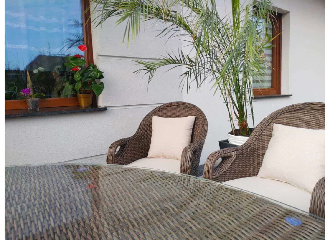 W komplecie także szyba hartowana o grubości 6 mm oraz poduszki na siedziska krzeseł.