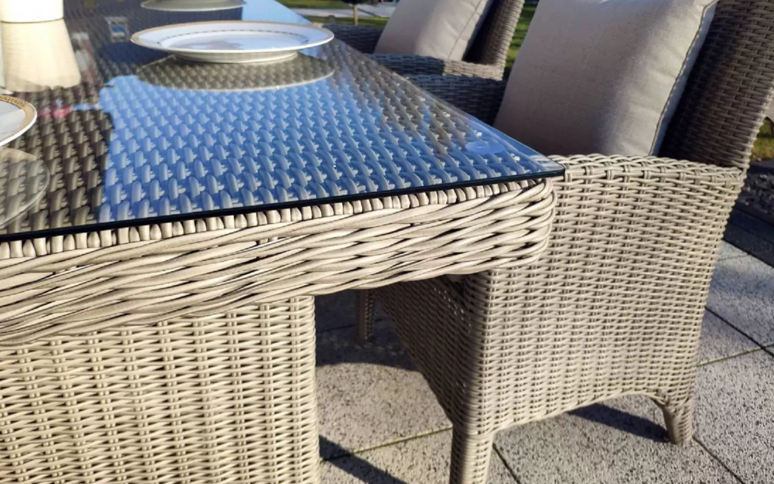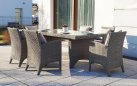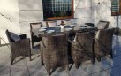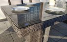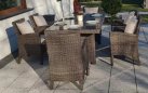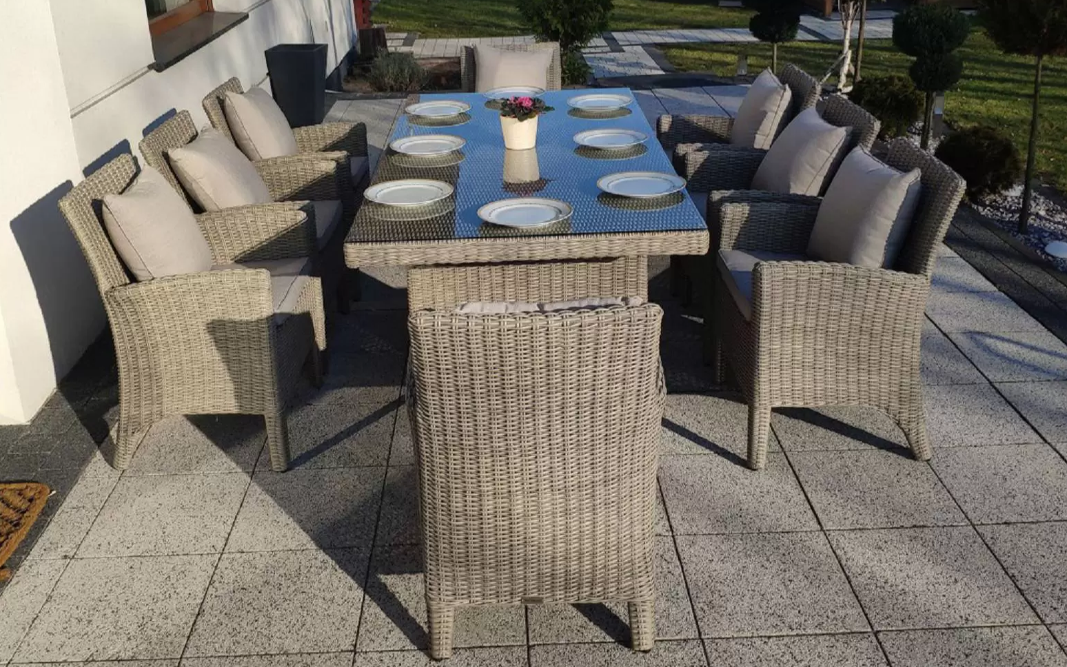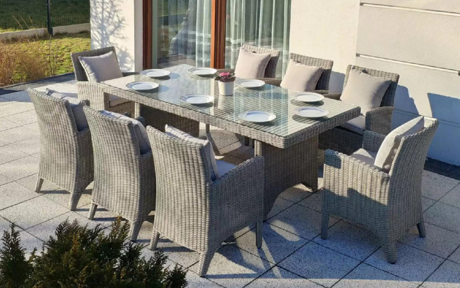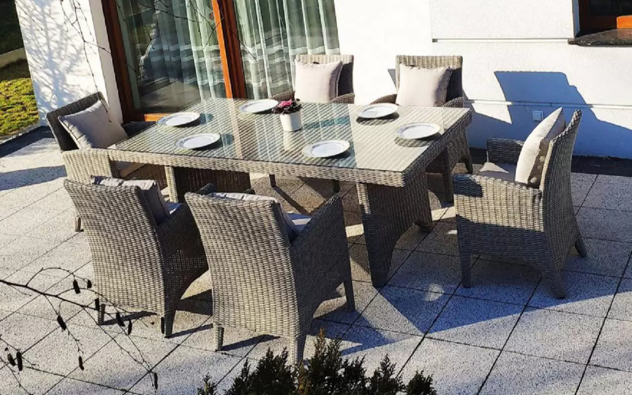Propozycja zestawu stołowego dla 6 osób z prostokątnym stołem 200 cm, który pomieści nawet 8 foteli. Komplet wykonany z półokrągłego technorattanu, który wyróżnia się dużą odpornością na warunki atmosferyczne, dzięki czemu ten zestaw ogrodowy świetnie sprawdzi się w polskich warunkach.
