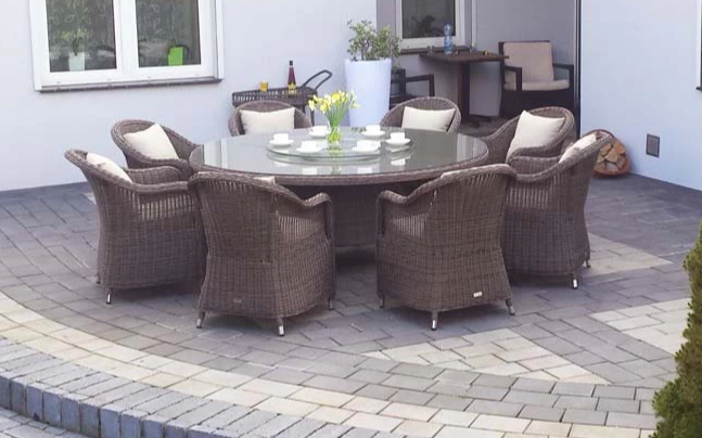 Komplet obiadowy ogrodowy technorattanowy z okrągłym stołem Ø180 cm i 8 fotelami KUMBANG