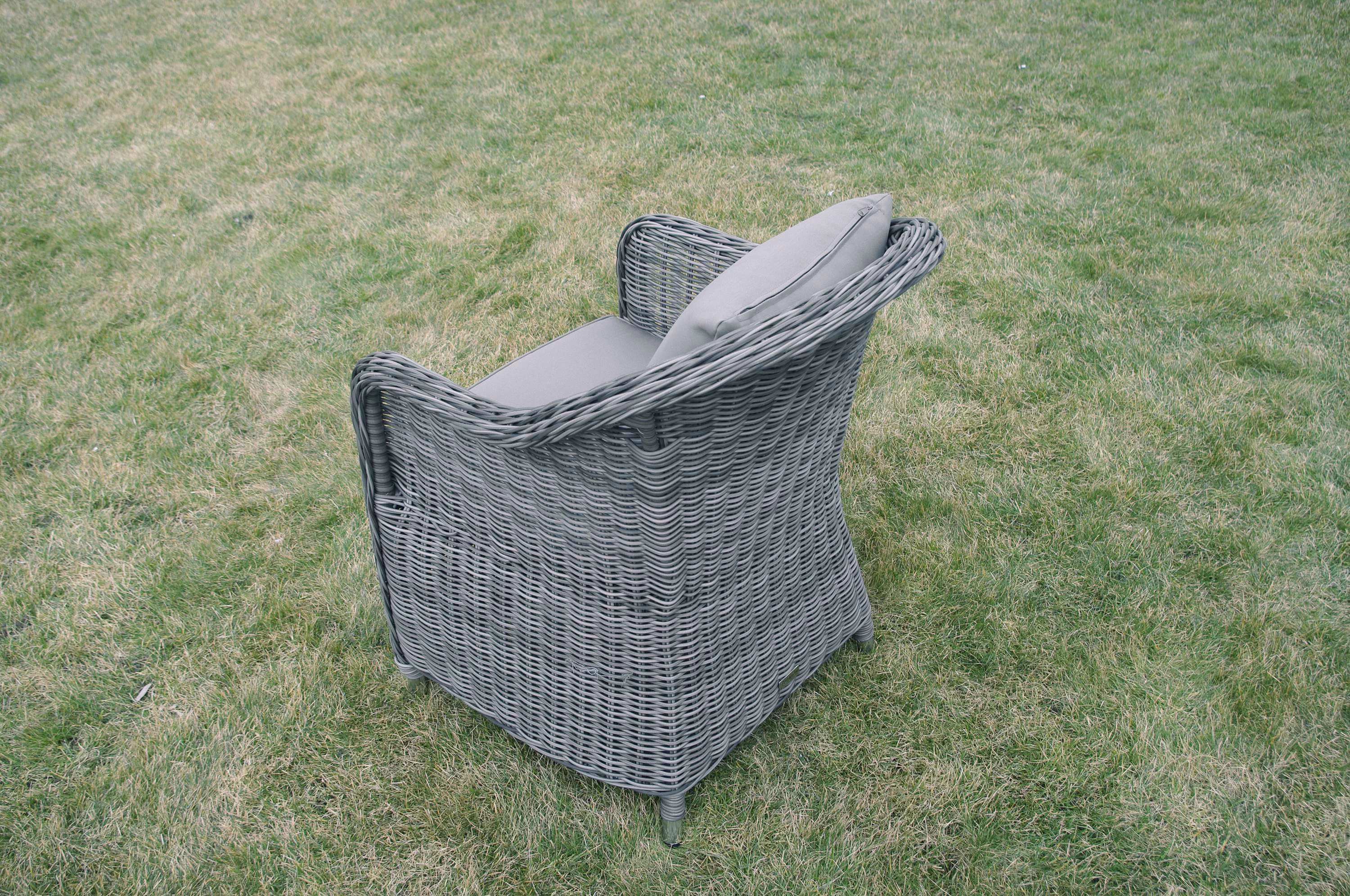 W skład zestawu wchodzi osiem głębokich, ergonomicznie wyprofilowanych foteli, które oferują komfort na poziomie luksusowych mebli salonowych. Projektanci postawili na pełną wygodę, doposażając każde siedzisko w komplet miękkich poduszek zarówno na dolną część, jak i oparcie. Taka konfiguracja sprawia, że nawet wielogodzinne spotkania przy wspólnym stole przebiegają w atmosferze pełnego odprężenia, a użytkownicy mogą cieszyć się stabilnym i miękkim podparciem kręgosłupa.