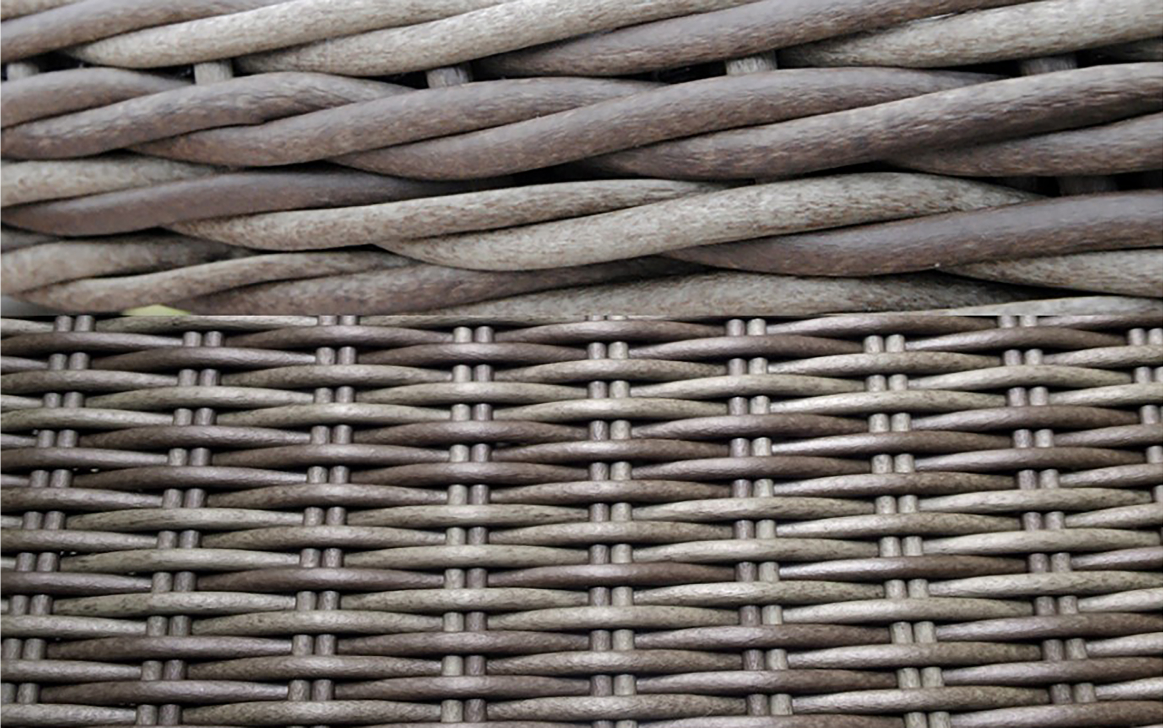 Plecionka z wysokiej klasy technorattanu o półokrągłym przekroju śr. 5,3 mm. Materiał w pełni odporny na warunki atmosferyczne oraz na UV.