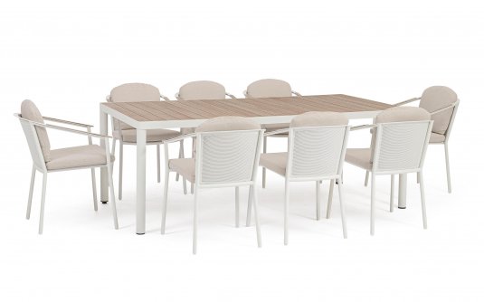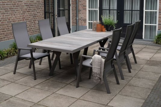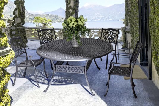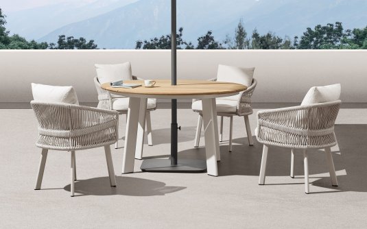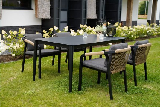 Uważamy, że obecnie taki nowoczesny stół z blatem ceramicznym będzie się doskonale się prezentował z krzesłami dla kontrastu z drewna teakowego lub technorattanu - taras będzie w stylu rustykalnym lub klasycznym a zarazem z nutką nowoczesności.
