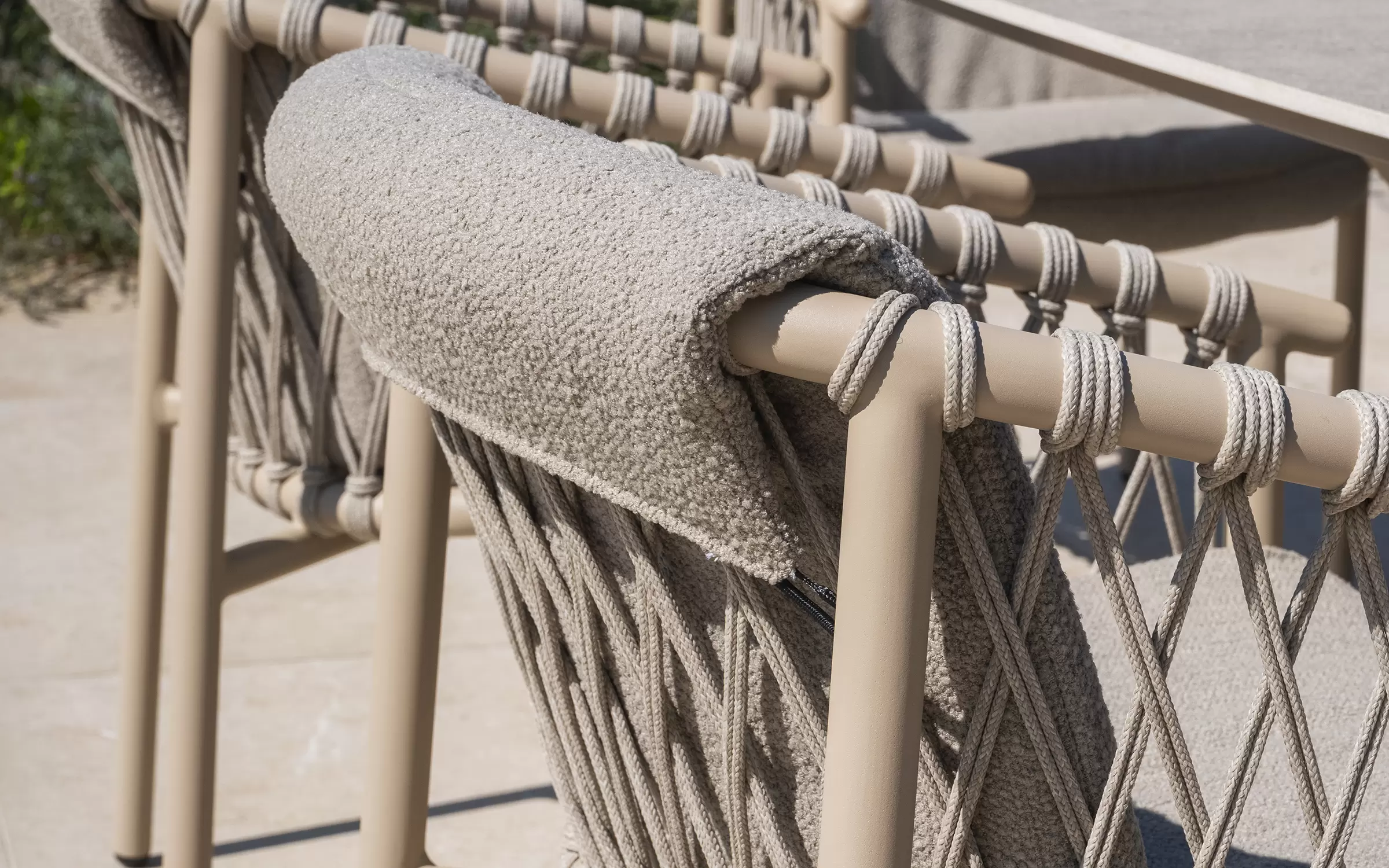Zdejmowane poszewki obiciowe z materiału Boucle wyplecionego z odpornych na działanie UV i wody włókien polipropylenowych.
