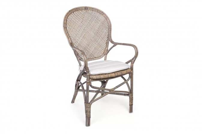 Wysokie krzesło z naturalnego rattanu. Ażurowa konstrukcja z pięknie giętymi elementami oparcia.