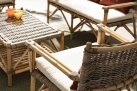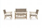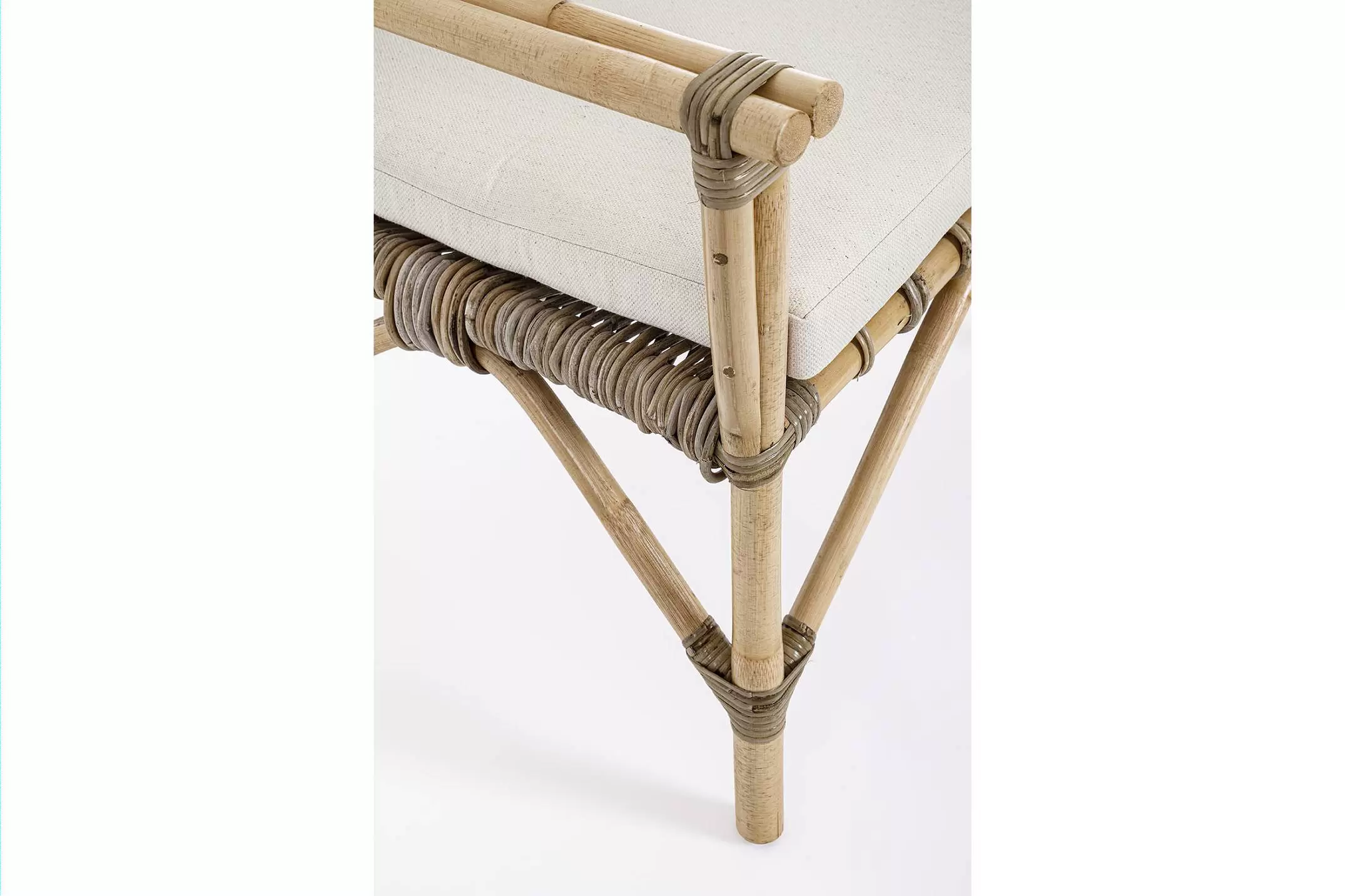 Meble oparte na rattanowej konstrukcji, natomiast siedzisko i oparcie wyplecione włókien rattanowych. W komplecie poduszka na siedzisko.