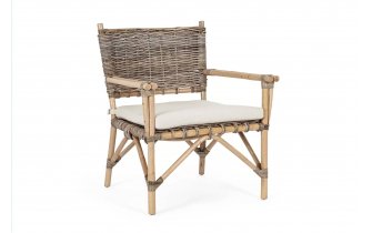 Meble oparte na rattanowej konstrukcji, natomiast siedzisko i oparcie wyplecione włókien rattanowych. W komplecie poduszka na siedzisko.