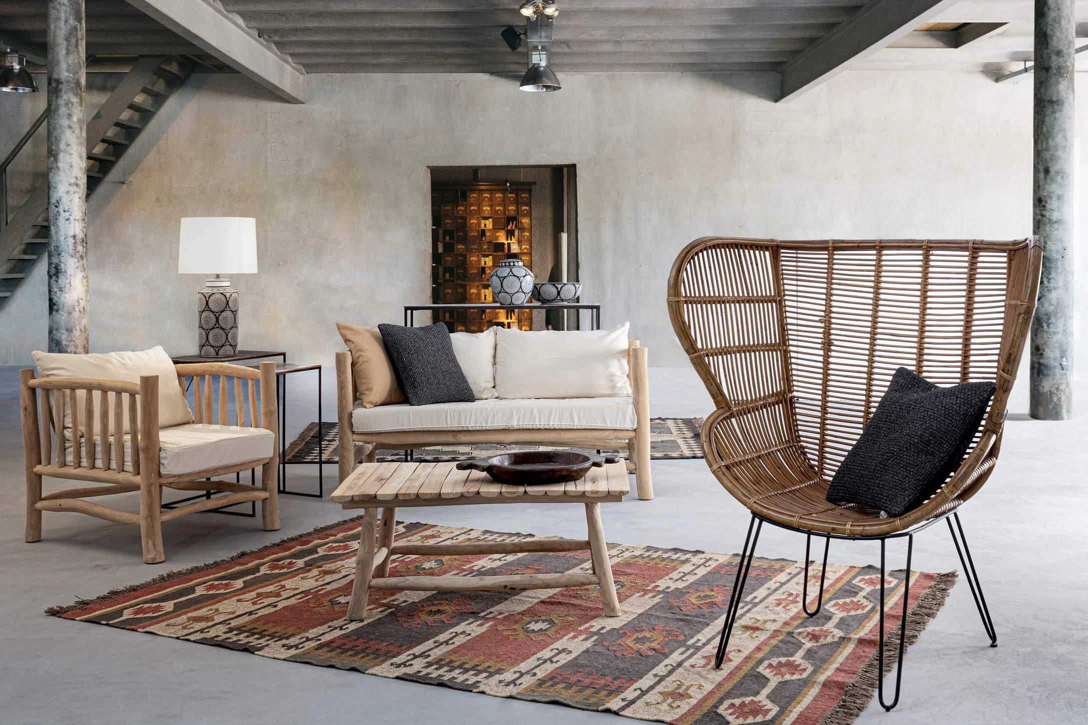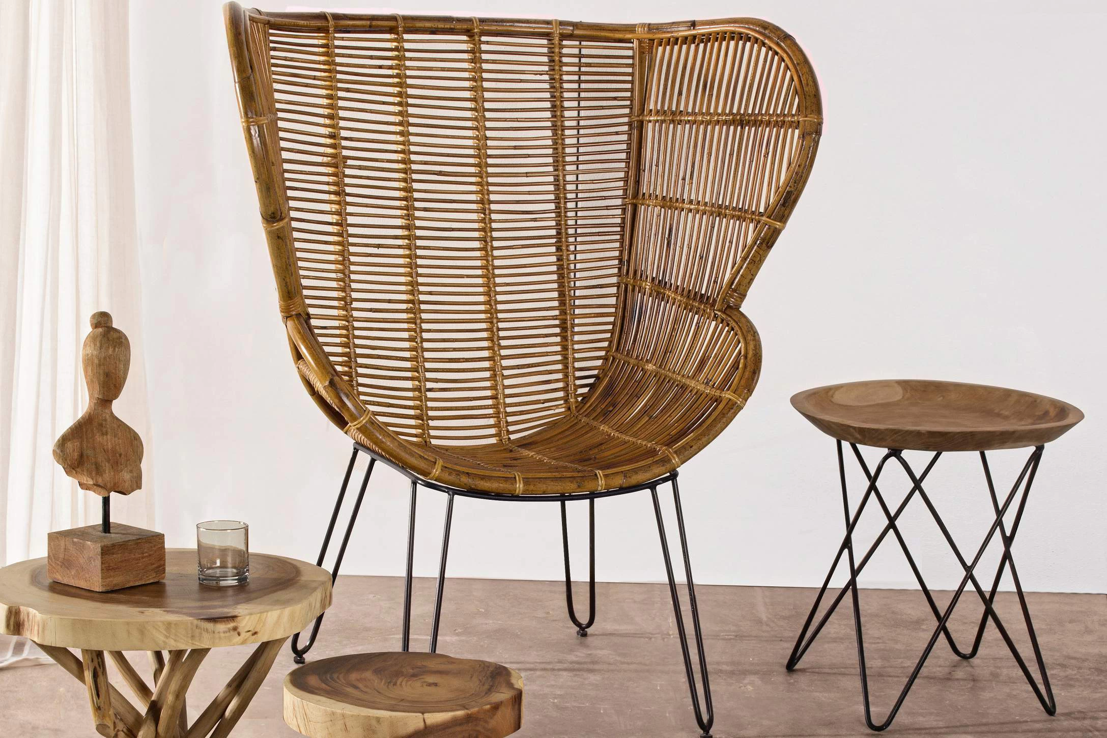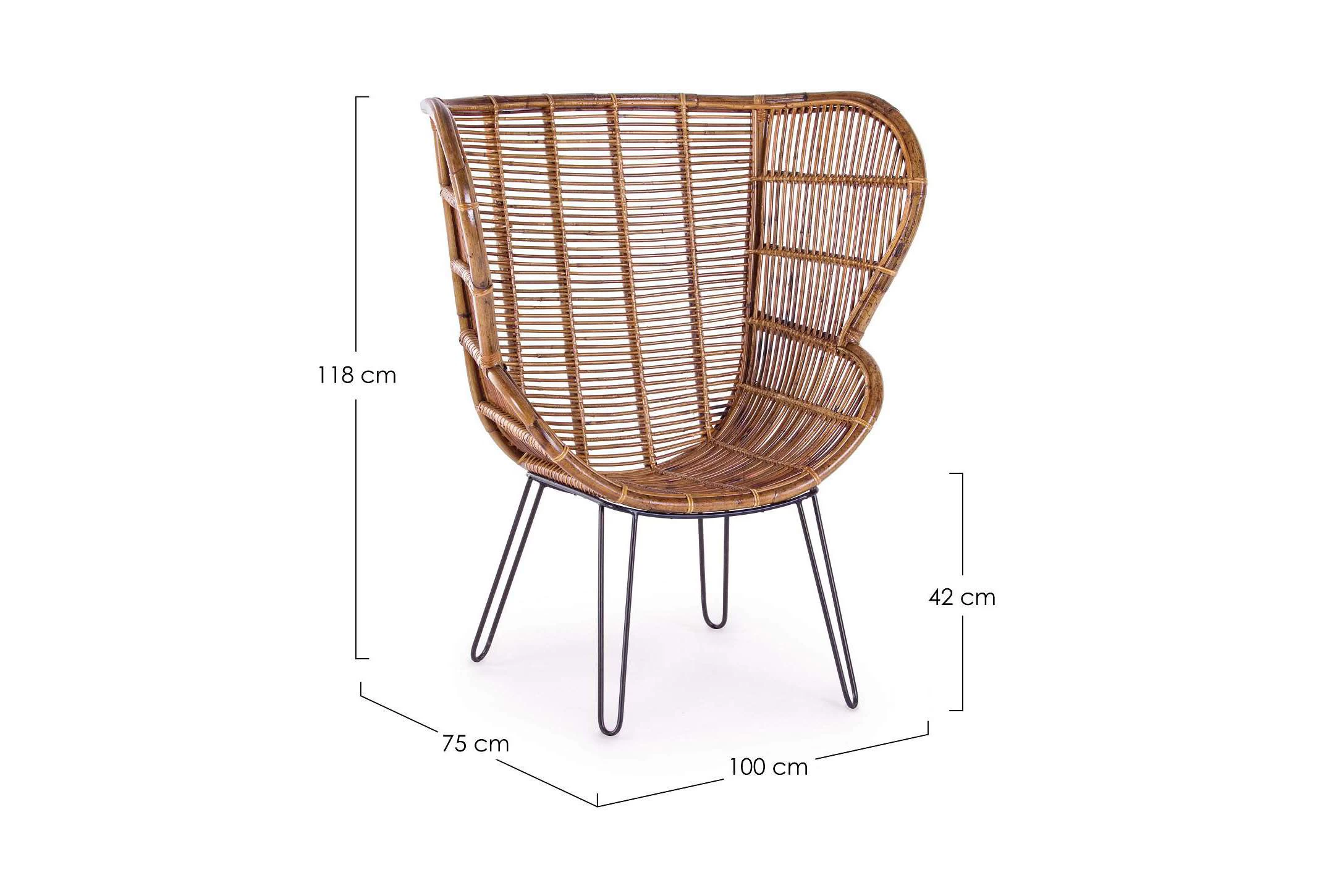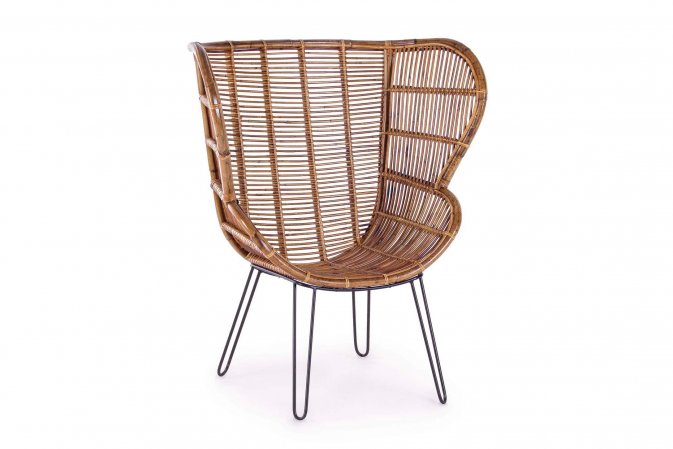 Fotel duży z naturalnego rattanu - lakierowany. Nogi stal malowana proszkowo na kolor czarny. Do patio i do wnętrz