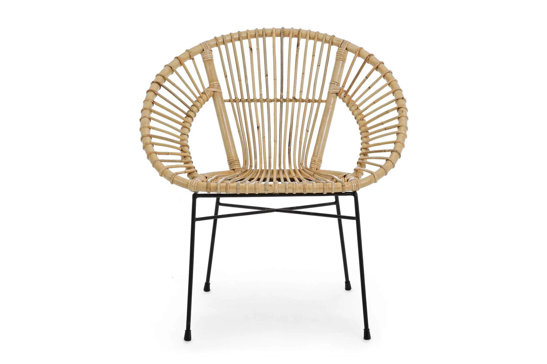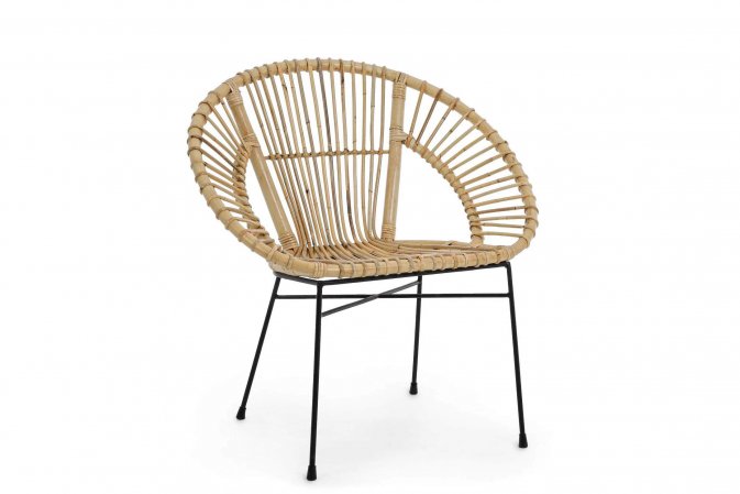 Krzesło z naturalnego rattanu - lakierowany. Nogi stal malowana proszkowo na kolor czarny. Do patio i do wnętrz.