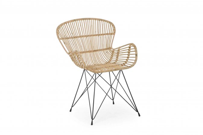 Krzesło do jadalni z naturalnego rattanu - lakierowany. Nogi stal malowana proszkowo na kolor czarny. Do patio i do wnętrz. Kolory naturalny i ciemny rattan.