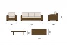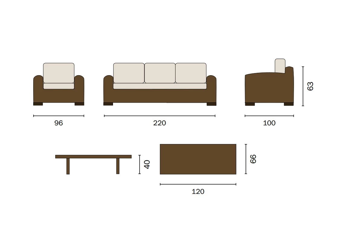 Szerokość 220 cm / Głębokość 96 cm / Wysokość 63 cm