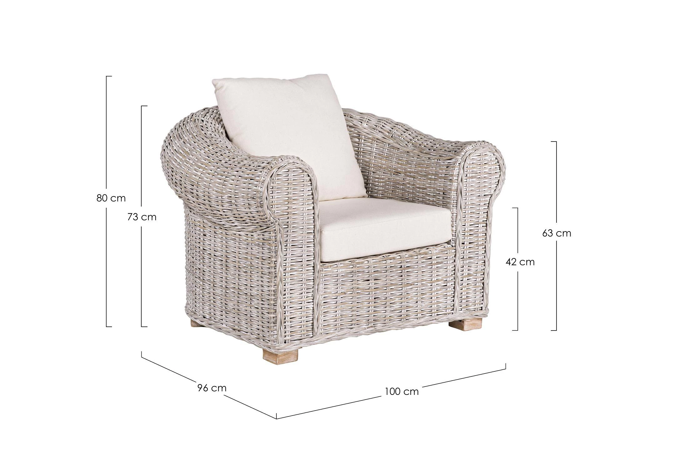 Szerokość 100 cm / Głębokość 96 cm / Wysokość 80 cm (wysokość oparcia 73 cm)