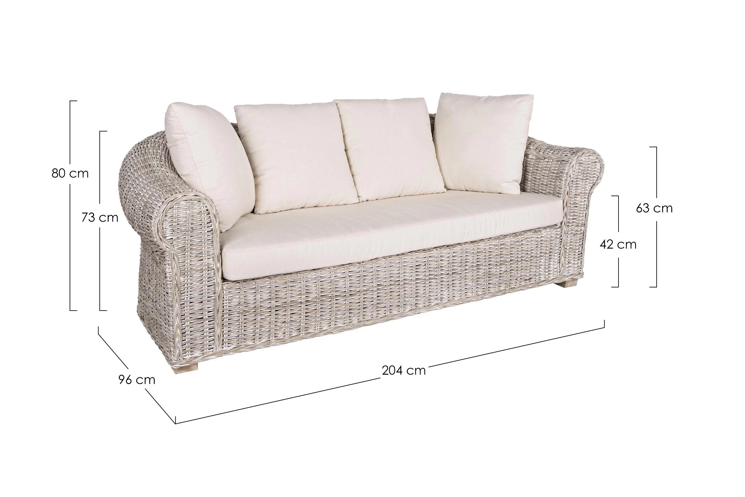 Szerokość 204 cm / Głębokość 96 cm / Wysokość 80 cm (wysokość oparcia 73 cm)