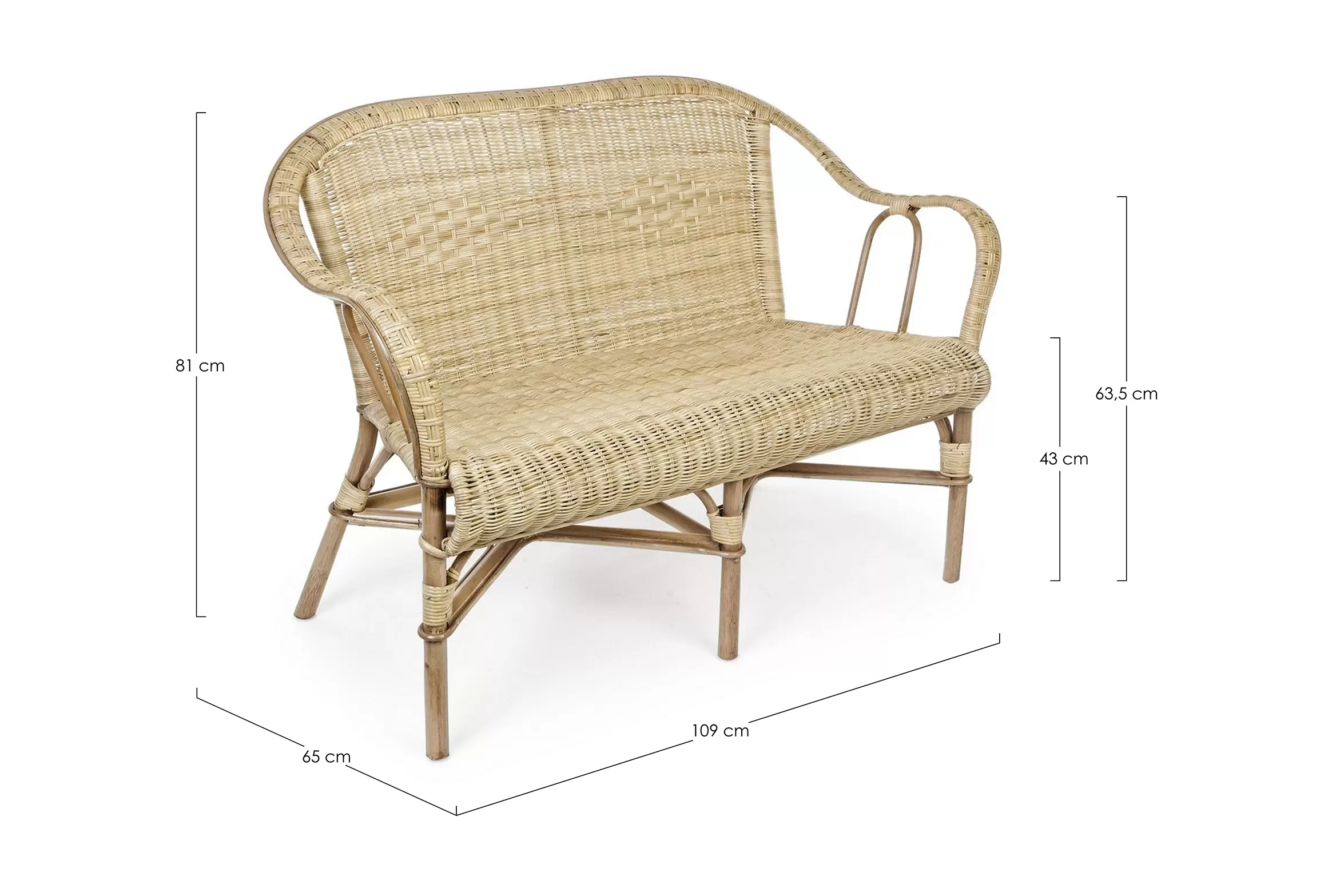 Sofa wypoczynkowa z naturalnego rattanu. Ażurowa konstrukcja z pięknie giętymi elementami oparcia.