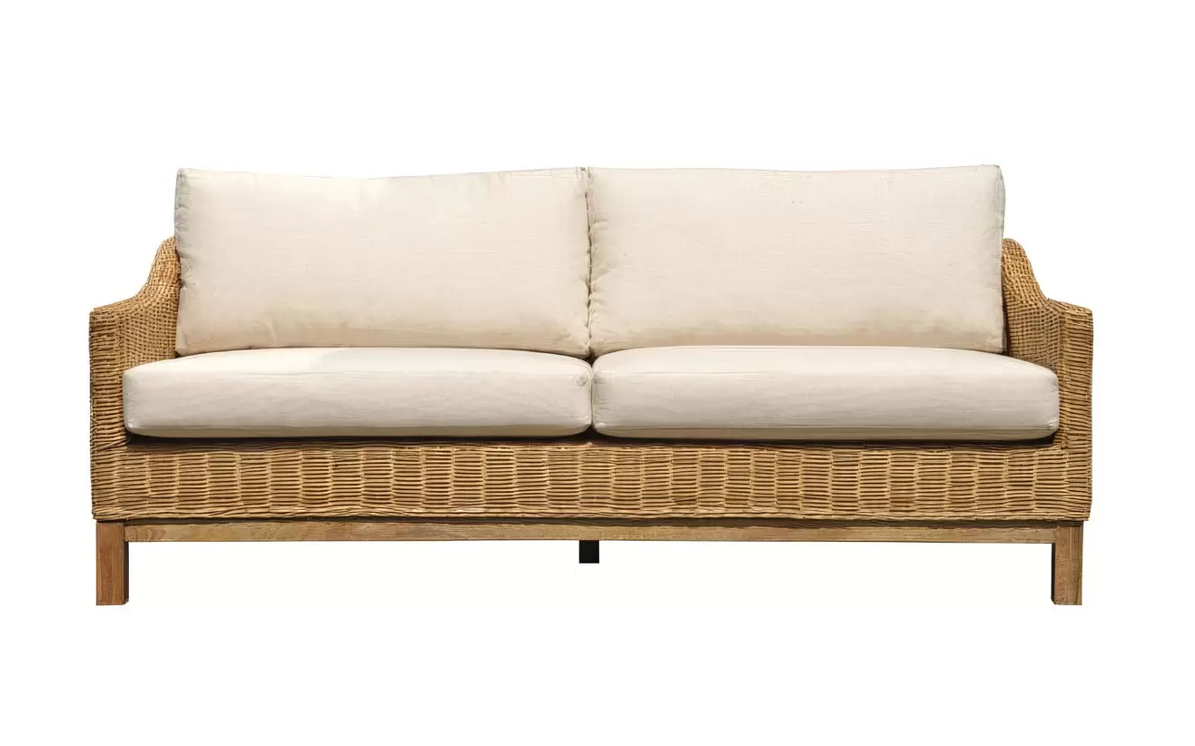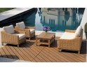 Zestaw wypoczynkowy z naturalnego rattanu. Składa się z sofy, dwóch foteli oraz stolika. Zestaw idealny do patio lub ogrodów zimowych.